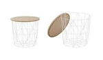 Skalba kulatý bílý dřevěný konferenční stolek s úložným prostorem moderní skandinávský do obýváku