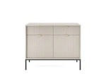 Nejlepší cenaKomoda Delicious moderní v kasmírové barvě s drážkováním a zásuvkami na černých nohách do obýváku 104 cm