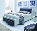 Čalouněná postel Aleks S 160x200 s úložnými zásuvkami ekokůže černo-bílá do ložnice