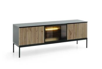 Nejlepší cenaTV stolek Harbin 180 cm šedý s drážkovanými dvířky moderní volně stojící do obýváku Intesi