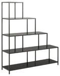 VýprodejKovová černá schodová knihovna Seaford industriální do obýváku 150x135 cm