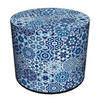 Zahradní kulatý puf Calc Intesi modro-bílý voděodolný na zahradu a balkon 40 cm