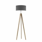 Stojací lampa HAITI šedý melír dřevěný trojnožka s textilním stínidlem do obývacího pokoje Lysne 138 cm