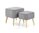 Nejlepší cenaSada 2 šedých kulatých taburetů Valo s úložným prostorem do obýváku a předsíně skandinávský styl