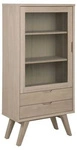 Komoda A-Line bělený dub moderní se zásuvkami a vitrínou na vysokých nohách do obýváku 72 cm Actona