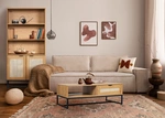 Speciální nabídkaKonferenční stolek Capri obdélníkový boho s ratanovým čelem a zásuvkou do obývacího pokoje 120x60 cm