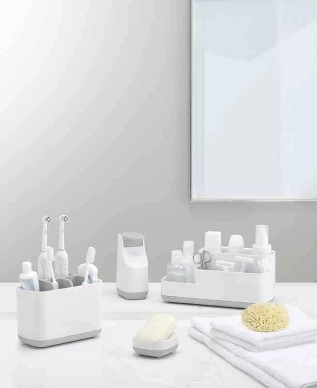 - Kompaktní rozměry – šetří místo na umyvadle, přitom zajišťuje pohodlný přístup ke kartáčkům i pastě