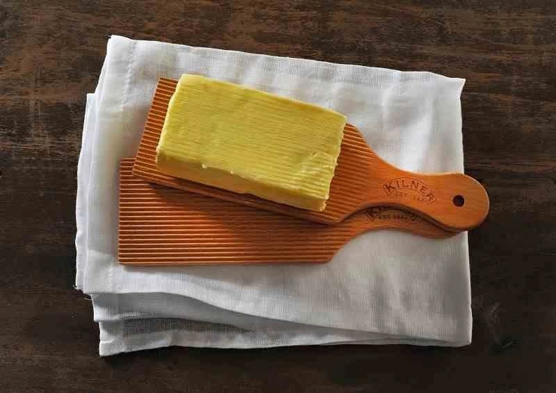 VLASTNOSTI VÝROBKU: - sada 2 lopatek na máslo, - budou užitečné při nalévání podmáslí, tvarování másla a jeho podávání, - špachtle mohou být také použity například pro podávání sýrů, - z bukového dřeva, - drážkování drží máslo na povrchu lopatky, - vybavena rukojetí s otvorem pro zavěšení, - určené k ručnímu čištění. Materiál: bukové dřevo Barva: hnědá