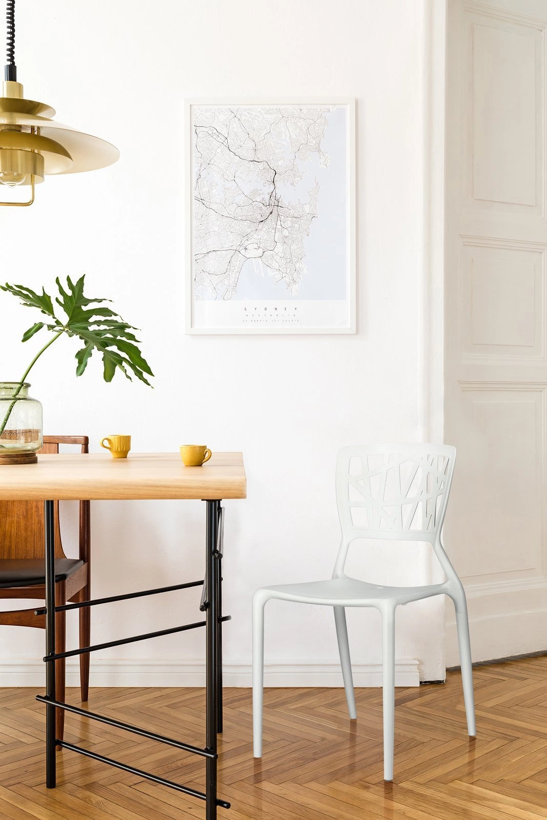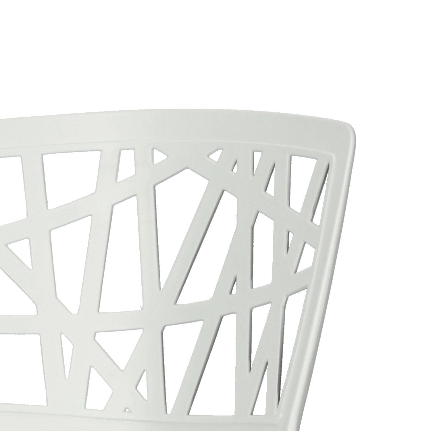 Židle Bush inspirovaná legendárním modelem Viento Chair je ideální volbou pro ty, kteří ocení originální design a univerzálnost. Matný bílý povrch a charakteristická vzdušná konstrukce dokonale zapadají do moderních aranžmá – jak v exteriéru, tak v interiéru. Opěrka se geometrickým vzorem přitahuje pozornost, dodává lehkost i menším prostorám a zároveň poskytuje pohodlnou oporu zad.