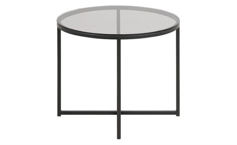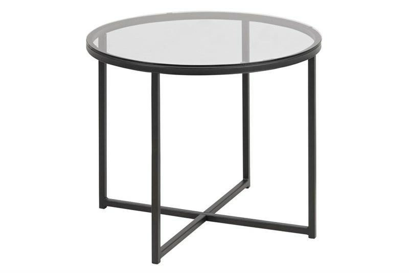 Kulatý stolek Cross je vyroben z černě lakovaného kovu a průhledného tvrzeného skla. Stolek bude dokonale vypadat v průmyslových, loftových a moderních interiérech.