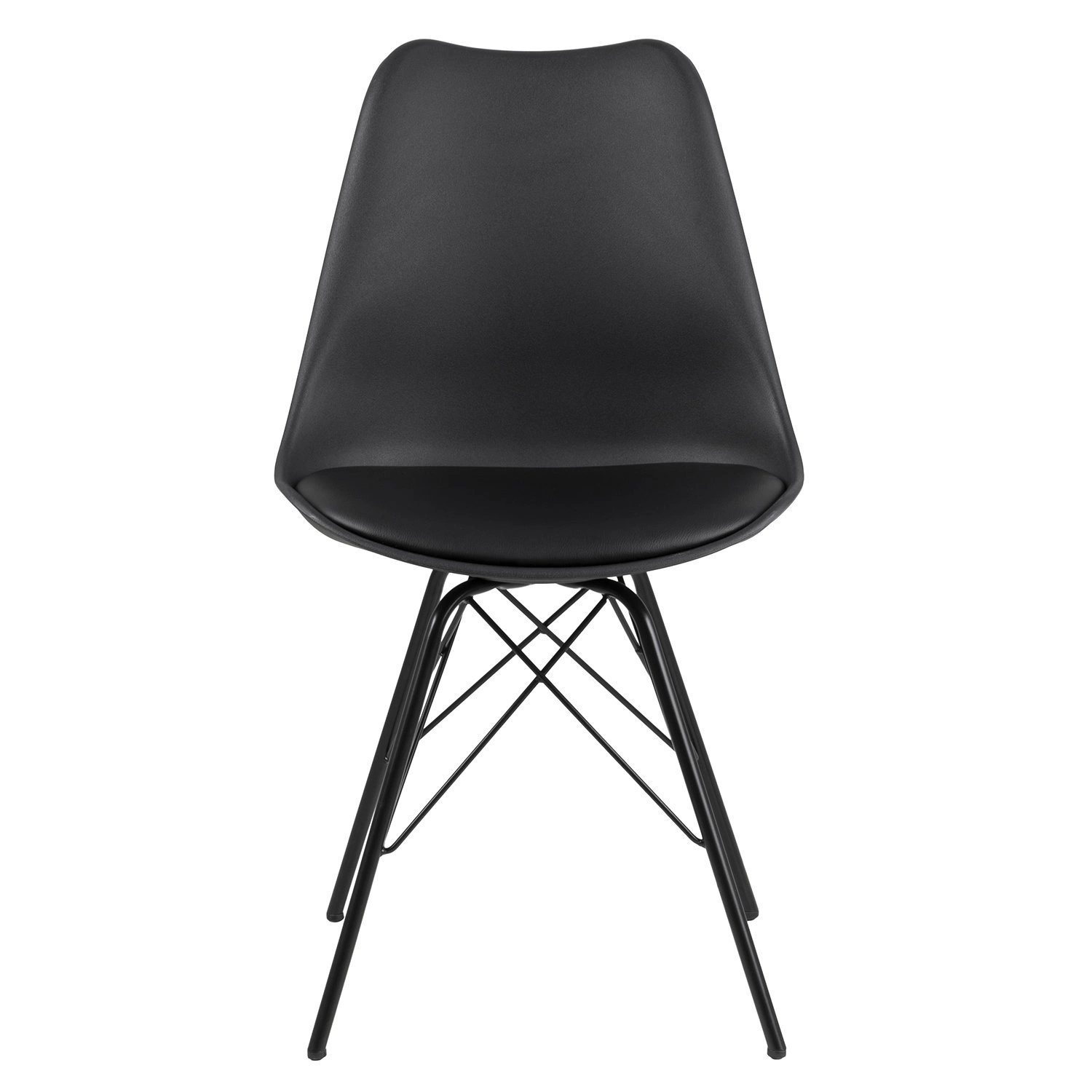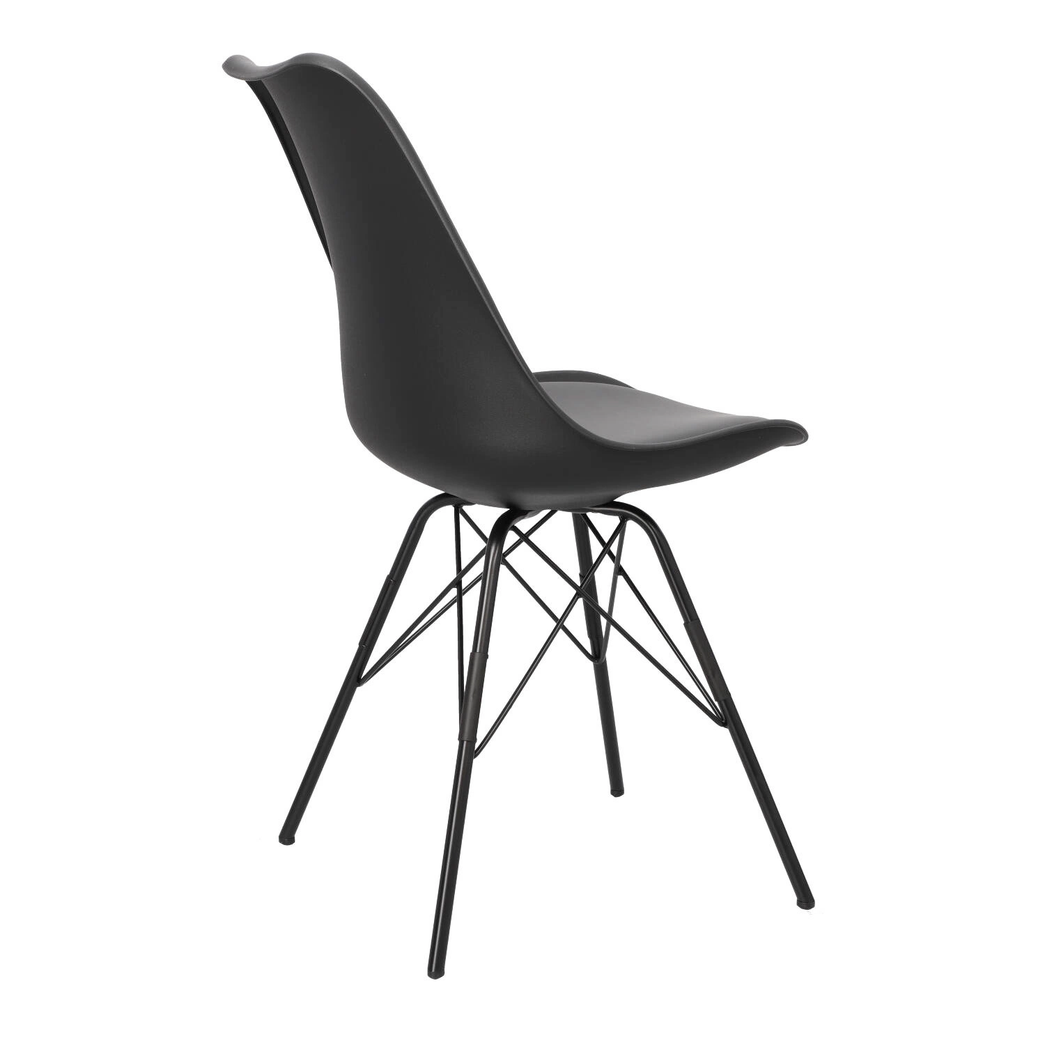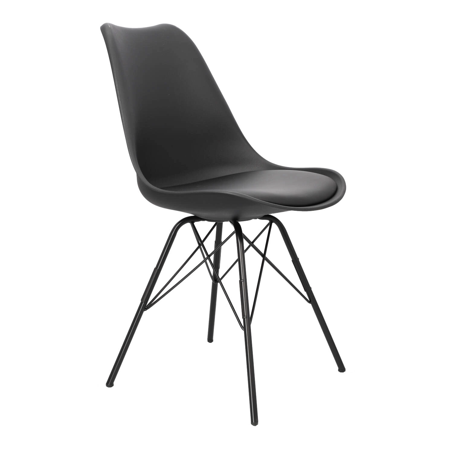 Design židle Eris PP zaujme minimalistickou siluetou a matným povrchem, které podtrhují její současný styl. Černé sedátko z odolného plastu je doplněno měkkým polštářem z kvalitní ekokůže, díky čemuž poskytuje pohodlí i při delším sezení u stolu. Stabilní kovové nohy v černém provedení zajišťují bezpečné používání a dokonale ladí se zbytkem konstrukce, což vytváří harmonický celek.
