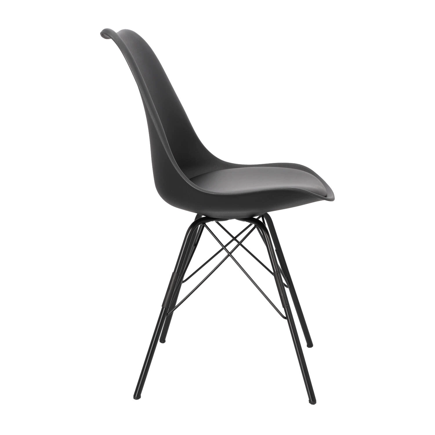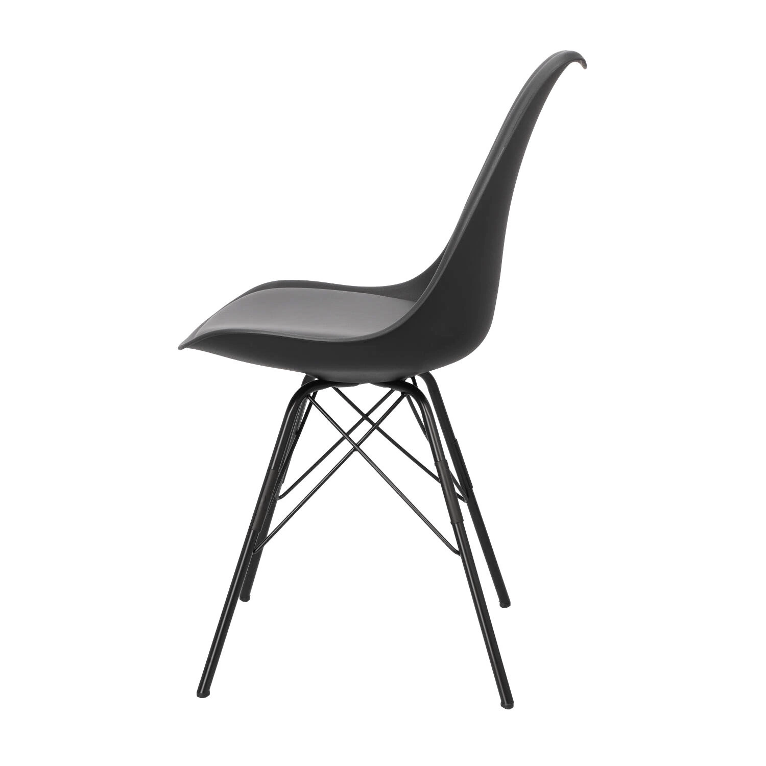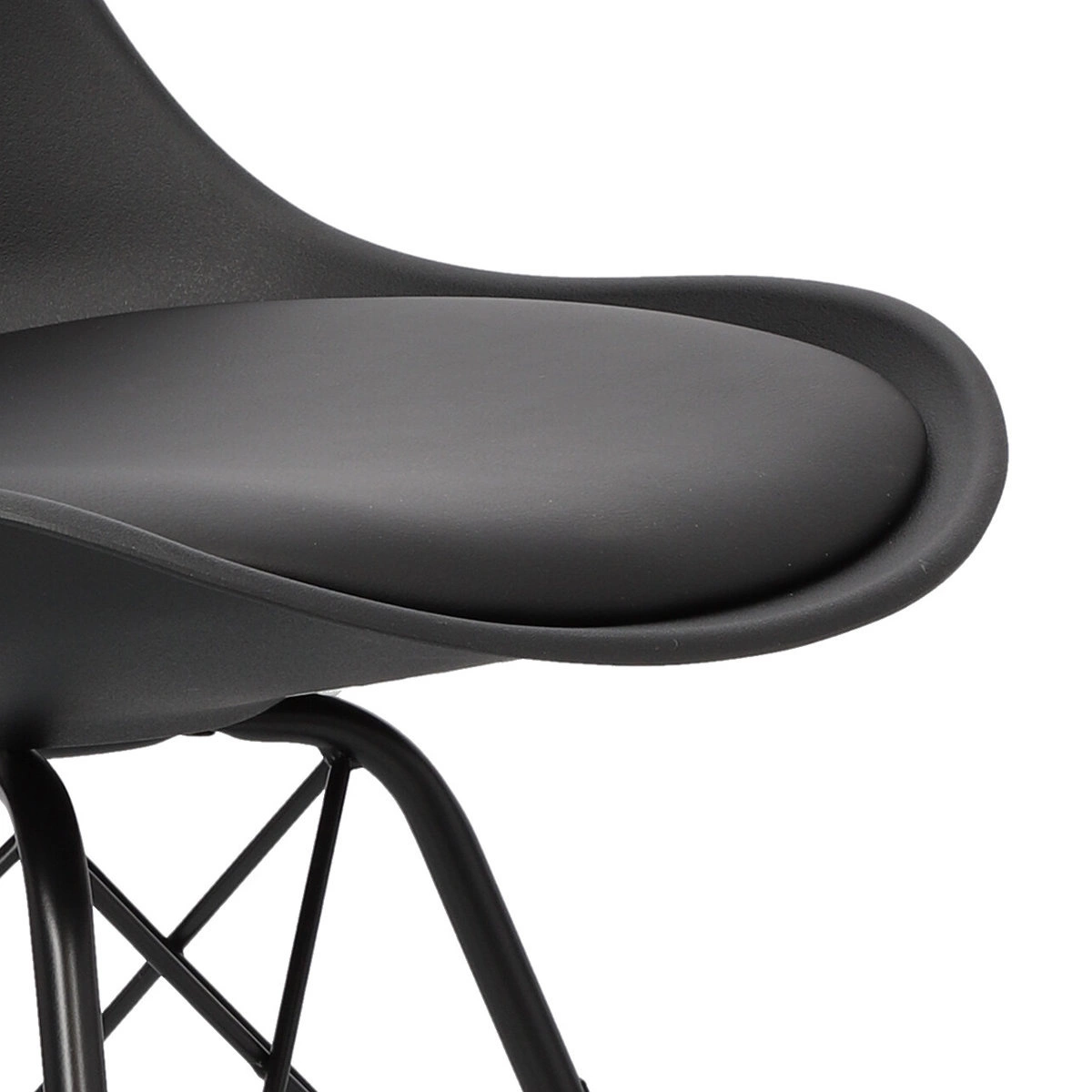 Design židle Eris PP zaujme minimalistickou siluetou a matným povrchem, které podtrhují její současný styl. Černé sedátko z odolného plastu je doplněno měkkým polštářem z kvalitní ekokůže, díky čemuž poskytuje pohodlí i při delším sezení u stolu. Stabilní kovové nohy v černém provedení zajišťují bezpečné používání a dokonale ladí se zbytkem konstrukce, což vytváří harmonický celek.