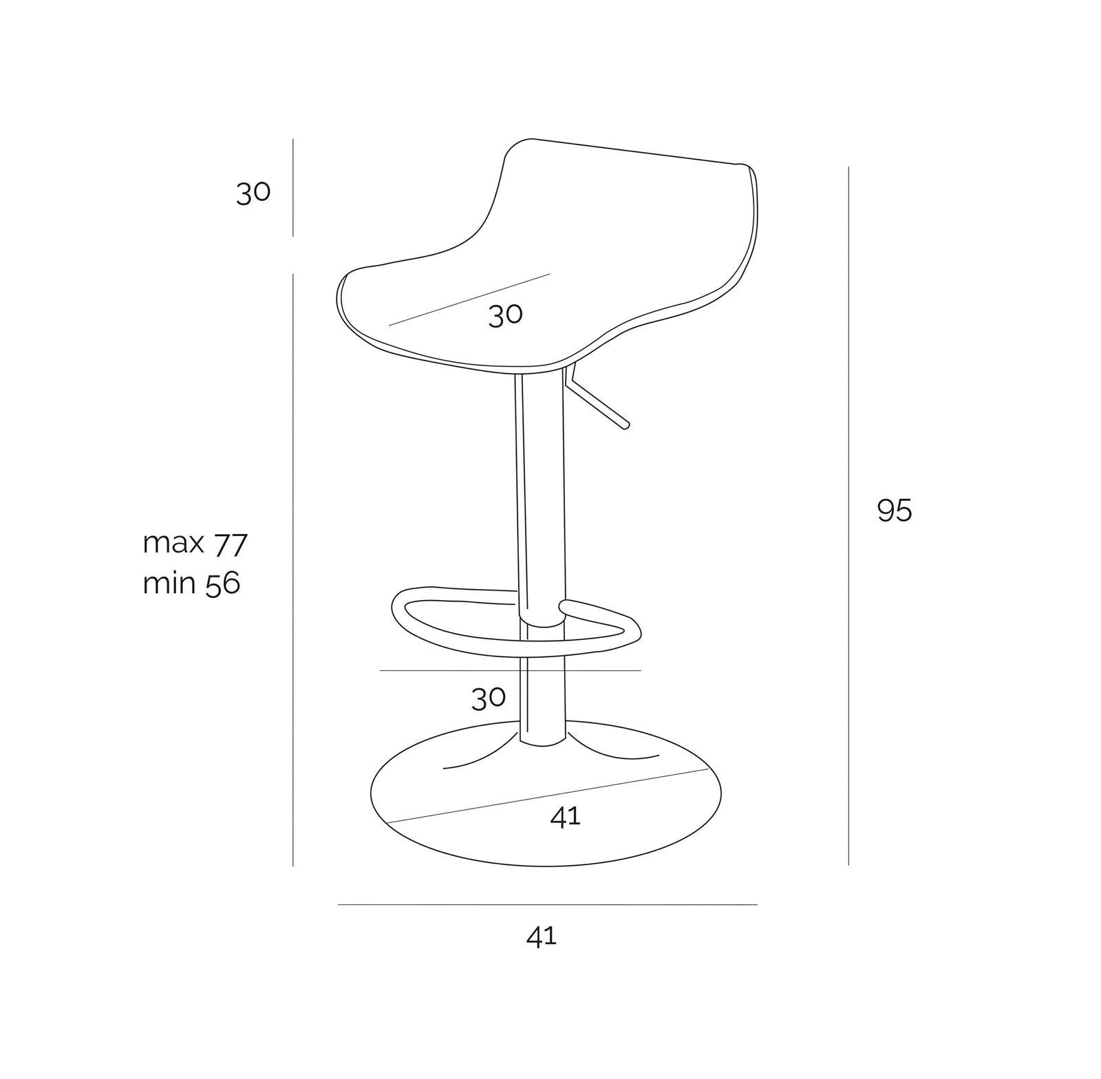 - Nastavitelná výška sedadla (56–77 cm) – snadno přizpůsobíte každému kuchyňskému ostrůvku nebo baru
