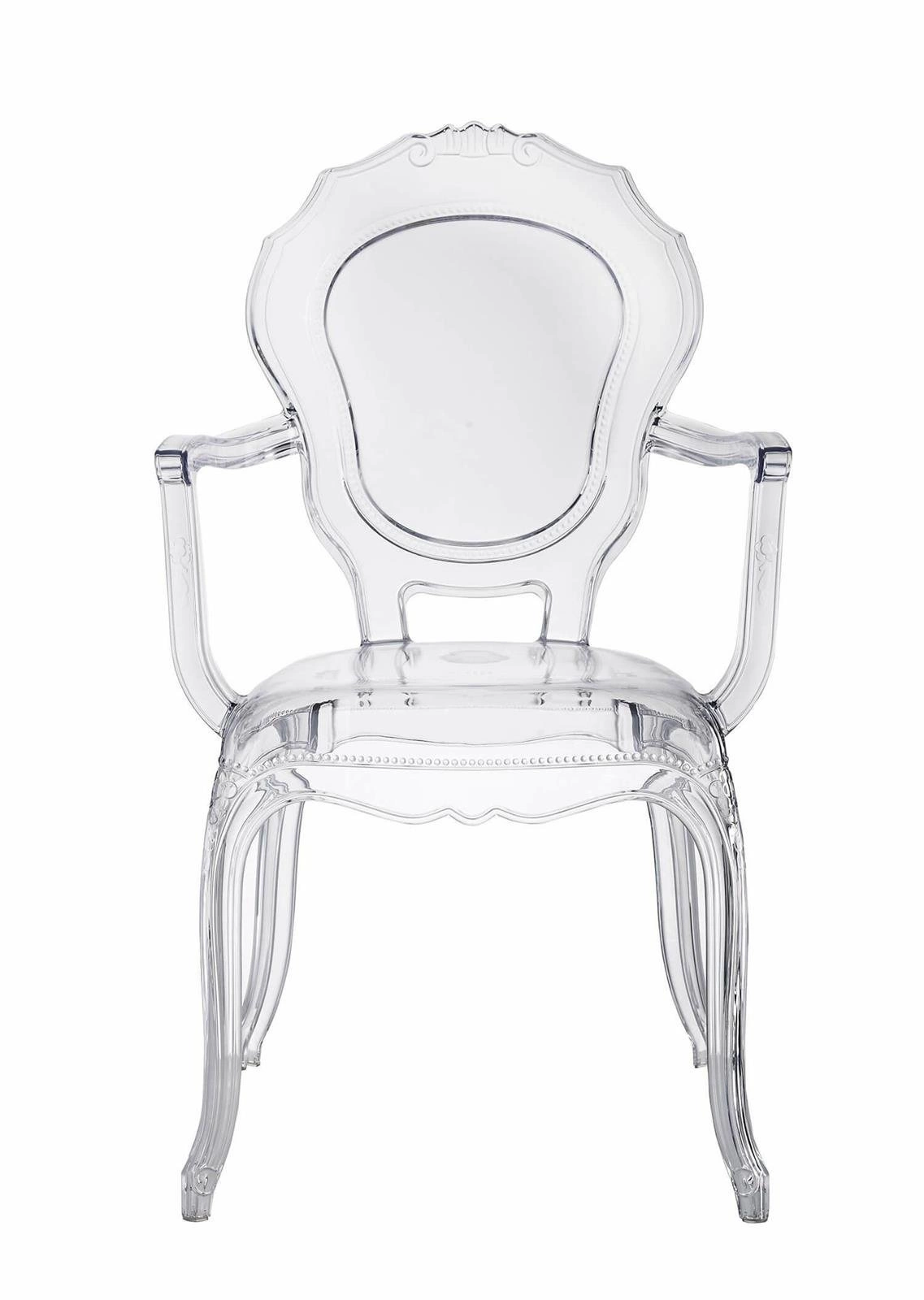 Průhledná židle Queen Arm Intesi glamour s područkami do obýváku stohovatelná