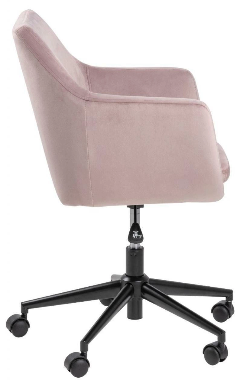 Růžová kancelářská židle Nora VIC zaujme jemným odstínem dusty rose a příjemnou sametovou látkou na dotek. Čalounění nejen dodává elegantní vzhled, ale poskytuje i pohodlí při dlouhých hodinách práce nebo studia. Hustá sametová vlákna jsou odolná vůči každodennímu používání a snadno se čistí, takže židle si dlouho zachová svěží a atraktivní vzhled. Ideální volba do moderních interiérů, kterým chcete dodat šmrnc glamour stylu.