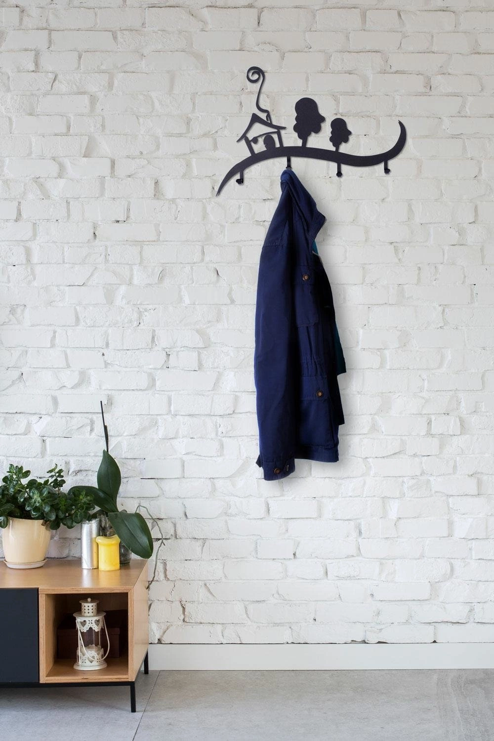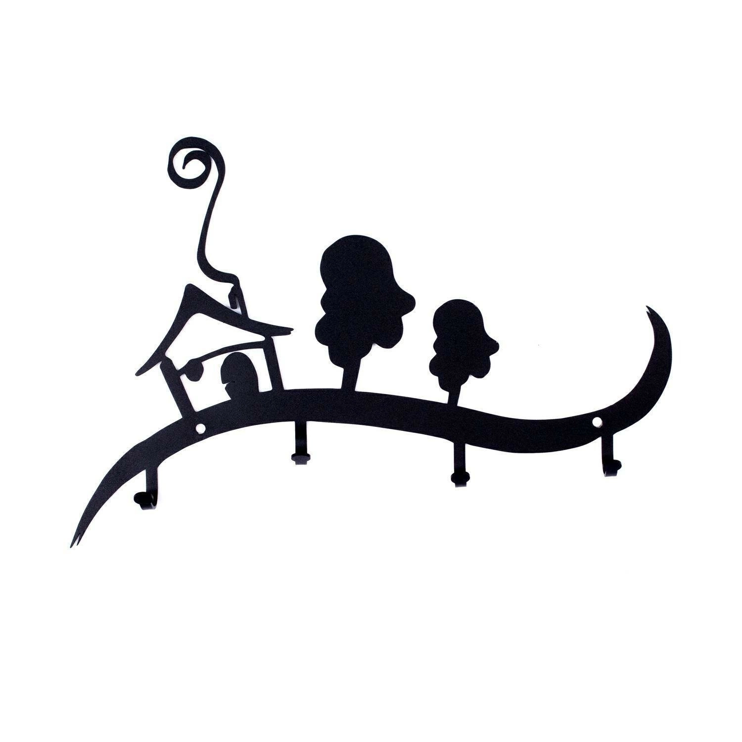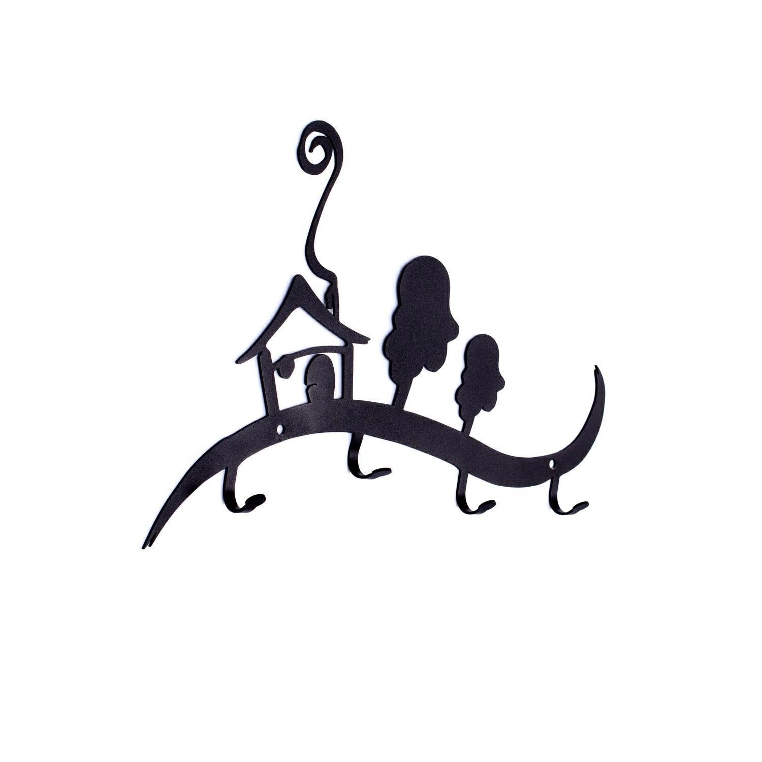 Nástěnný věšák Domek od značky Intesi je praktickým a stylovým řešením pro předsíň, vyrobeným z odolného kovu v elegantní černé barvě. Díky čtyřem pevným háčkům a modernímu tvaru umožňuje pohodlné uložení bund, klíčů či kabelek a zároveň přináší do interiéru industriální nádech. Kompaktní rozměry (výška 28 cm, šířka 41 cm, hloubka 4 cm) zajistí, že věšák perfektně zapadne i do menších prostor.