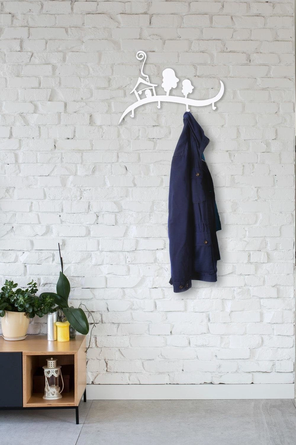 Nástěnný věšák Domek značky Intesi je nejen praktickým místem pro odkládání svrchního oblečení, ale také jemnou dekorací na zeď, která dodá interiéru příjemnou domácí atmosféru. Jeho moderní a přívětivý tvar zaručuje, že se bude skvěle vyjímat jak v předsíni, tak ve vaší domácí šatně. Jednoduché linie a bílá barva podtrhují lehkost konstrukce a snadno zapadnou do minimalistických nebo industriálních interiérů.