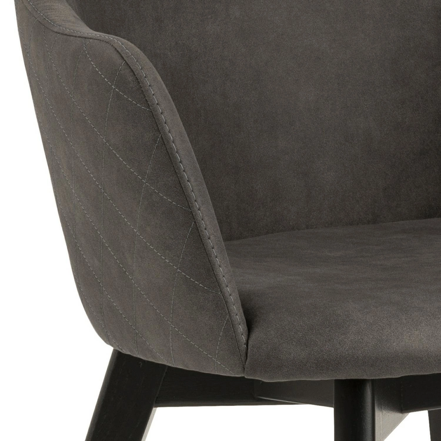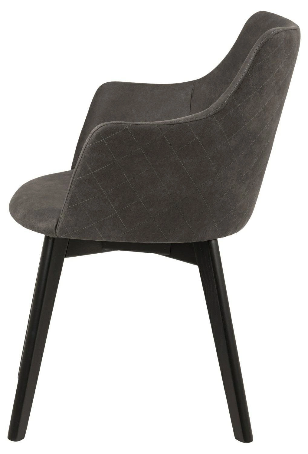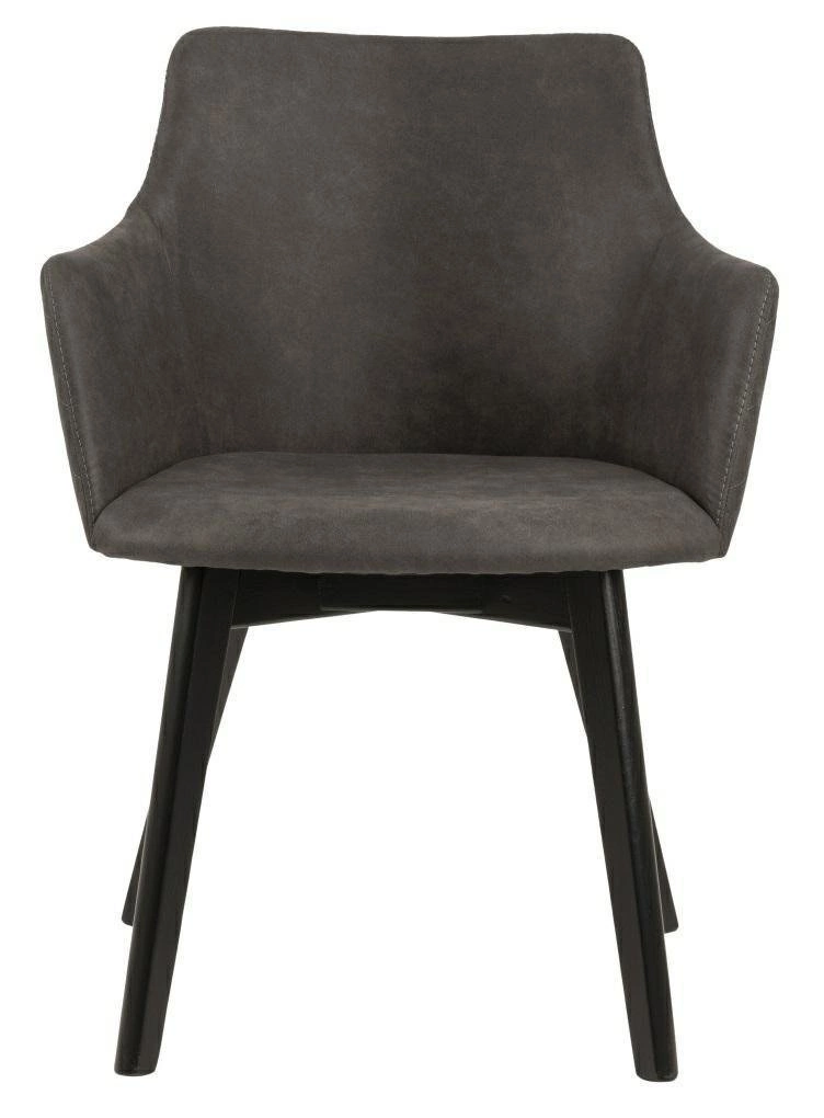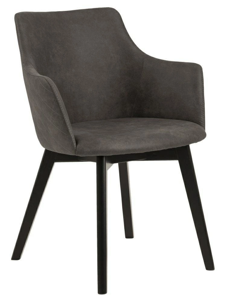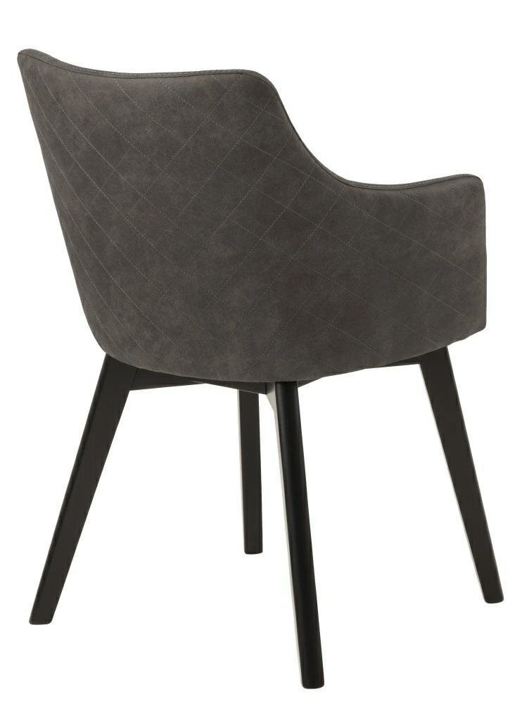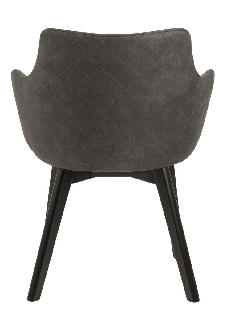 Konstrukce židle je vyrobena z černě lakovaného dubového dřeva, což podtrhuje moderní vzhled a zároveň zaručuje stabilitu i odolnost při každodenním používání. Antracitová čalouněná látka je příjemná na dotek a snadno se udržuje, takže si židle uchová svůj elegantní vzhled po dlouhá léta.