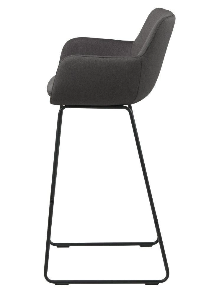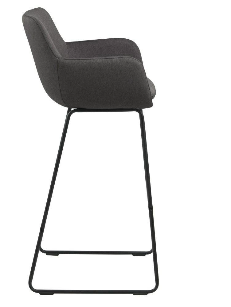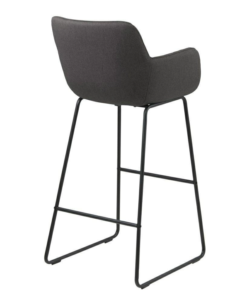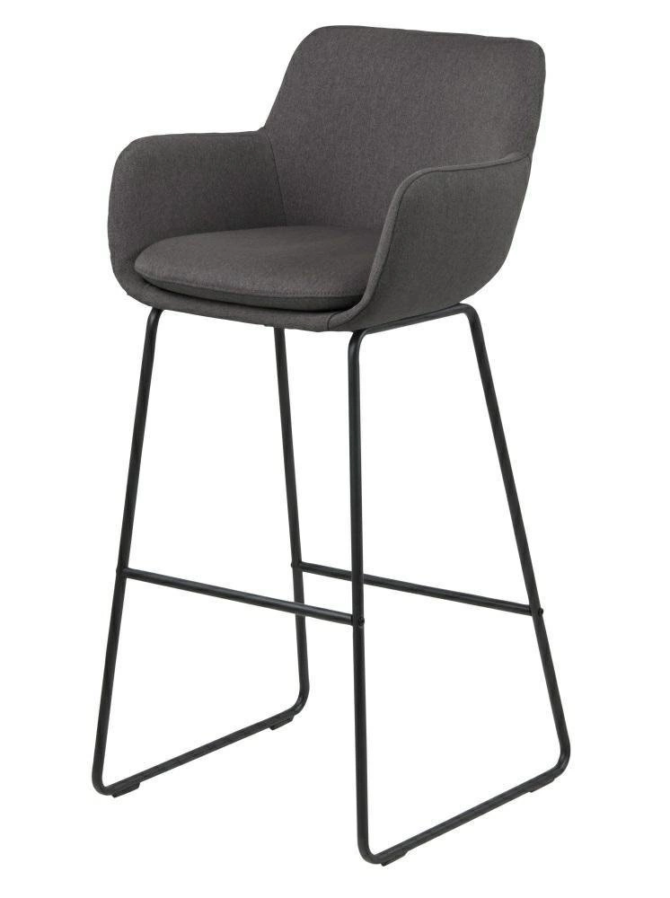 Čalouněný barový hoker s opěradlem Lisa od značky Actona je elegantní a pohodlná barová židle ve stylu glamour, ideální do kuchyně, jídelny nebo k domácímu ostrůvku. Vyniká šedým textilním sedákem, vysokým opěradlem a stabilní konstrukcí na čtyřech černých kovových nohách. Výška sedáku 76 cm zaručuje, že se perfektně hodí jako barová židle k kuchyňskému ostrůvku či vysokému pultu.