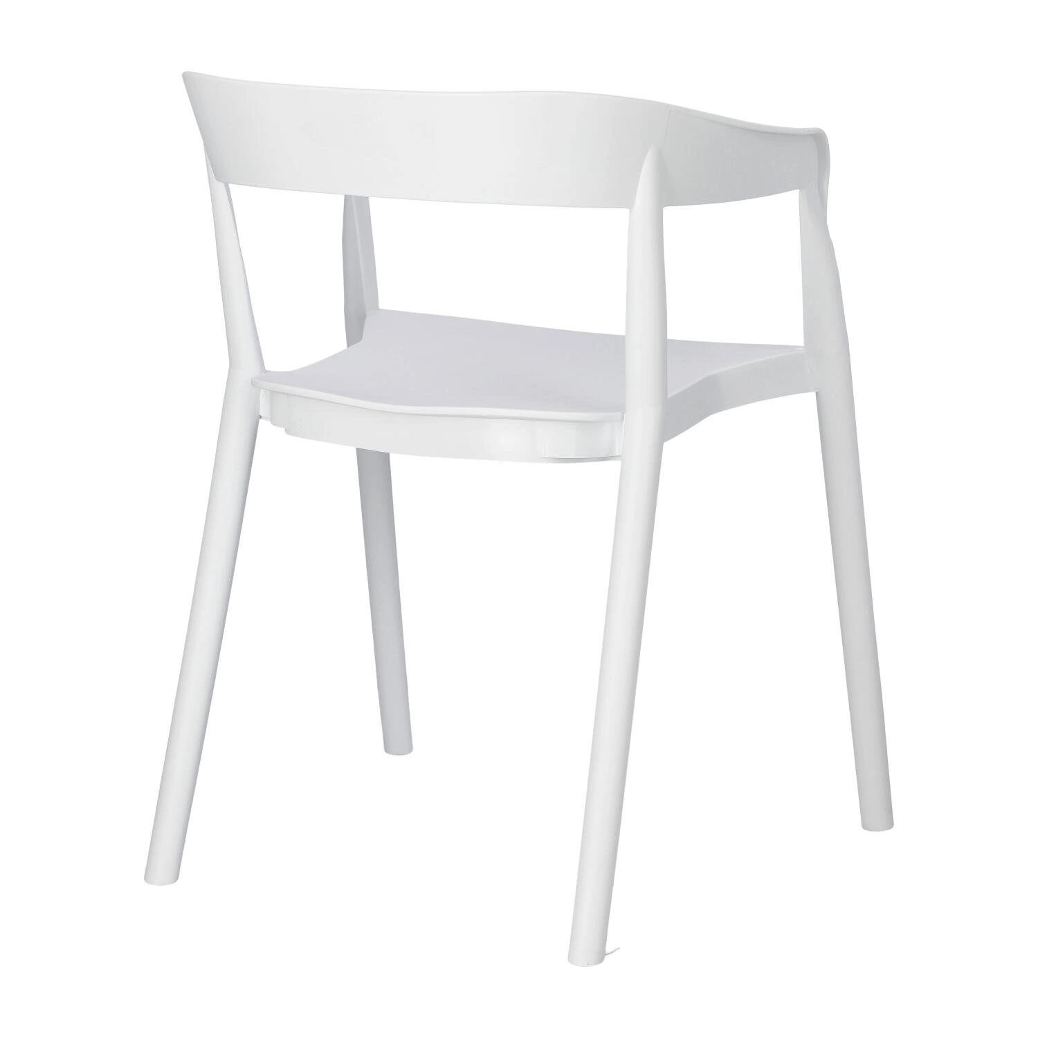 Bow je moderní polypropylenová židle. Opěradlo židle plynule přechází v područky a vytváří odolnou konstrukci. Celá židle je vyrobena z bílého plastu. Max. zatížení: 120 kg.