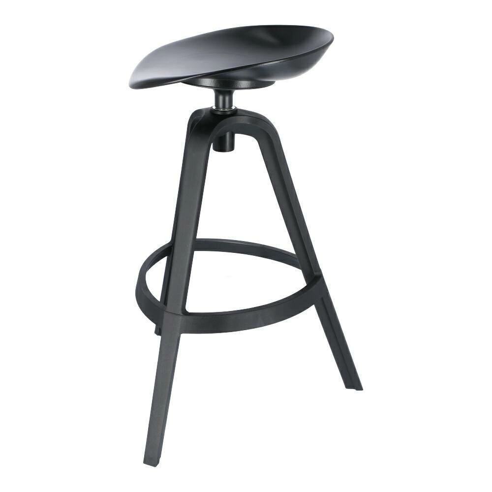 Barová stolička Banksy od značky Intesi je moderní, černý otočný hoker vyrobený z odolného plastu. Vyniká minimalistickým designem, pohodlným sedákem bez opěradla o výšce 77 cm a stabilní třínohou základnou s praktickou opěrkou na nohy. Je to ideální volba do kuchyně, jídelny nebo k kuchyňskému ostrůvku – když záleží na stylu, funkčnosti a pohodlí při každodenním používání.