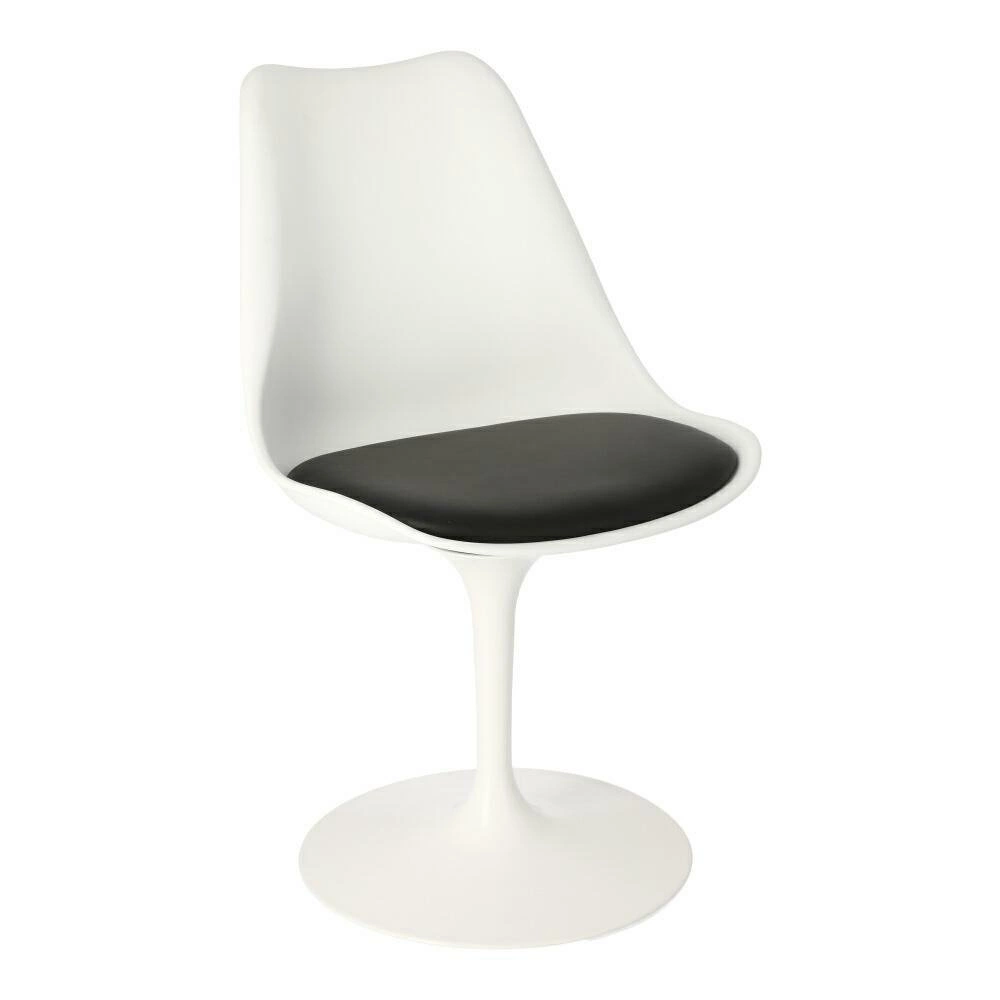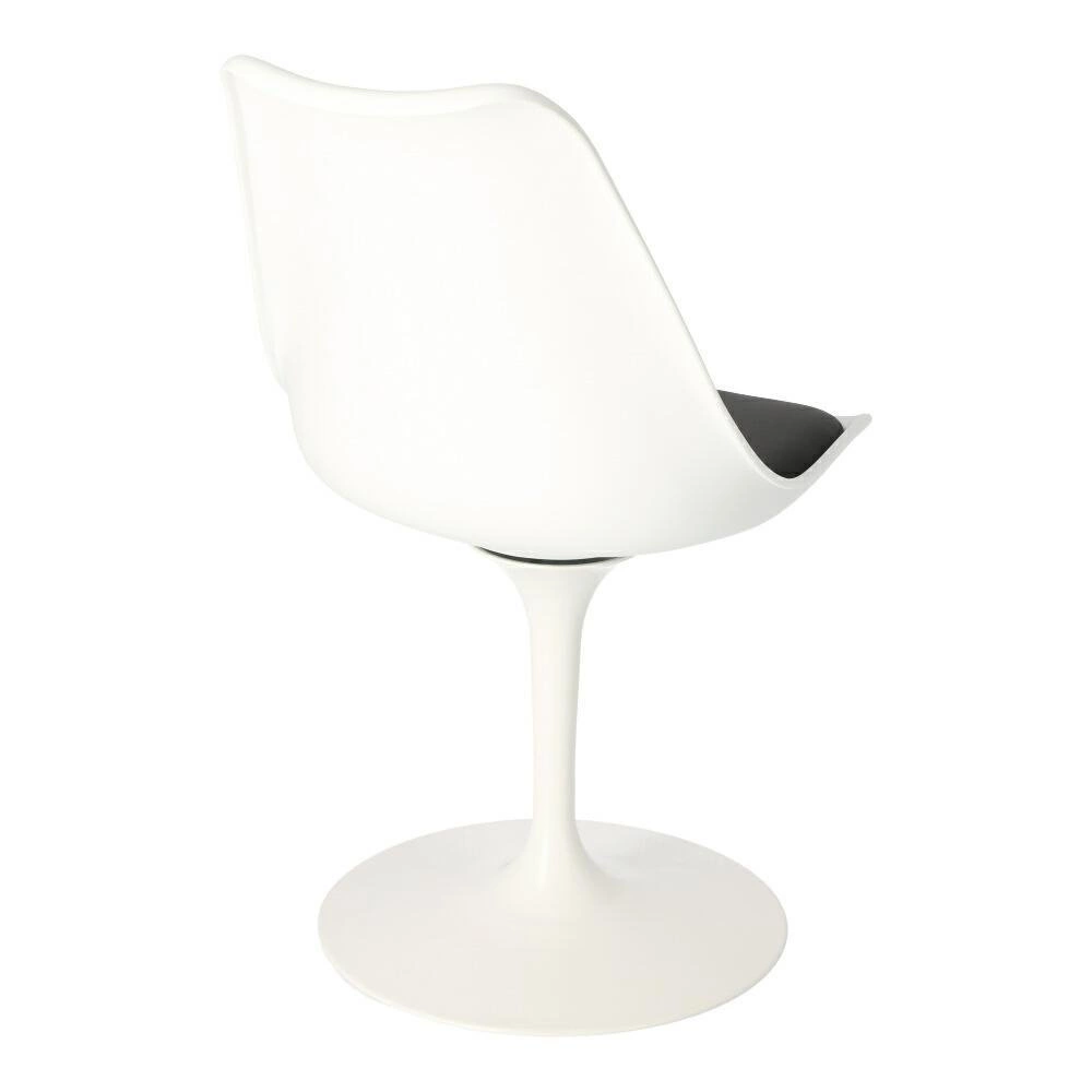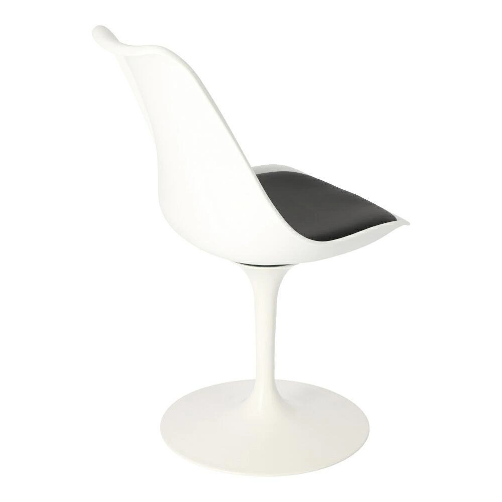 Židle Tulip Basic od značky D2.DESIGN je moderní, bílé otočné křeslo vyrobené z odolného plastu, vybavené pohodlným polštářem na sedáku. Jeho minimalistický tvar na jedné noze, ergonomické rozměry (výška 81 cm, šířka 47 cm, hloubka 50 cm) a stylový design inspirovaný klasikou zaručují, že se skvěle hodí jako židle do obýváku, jídelny, kuchyně nebo ke kosmetickému stolku.