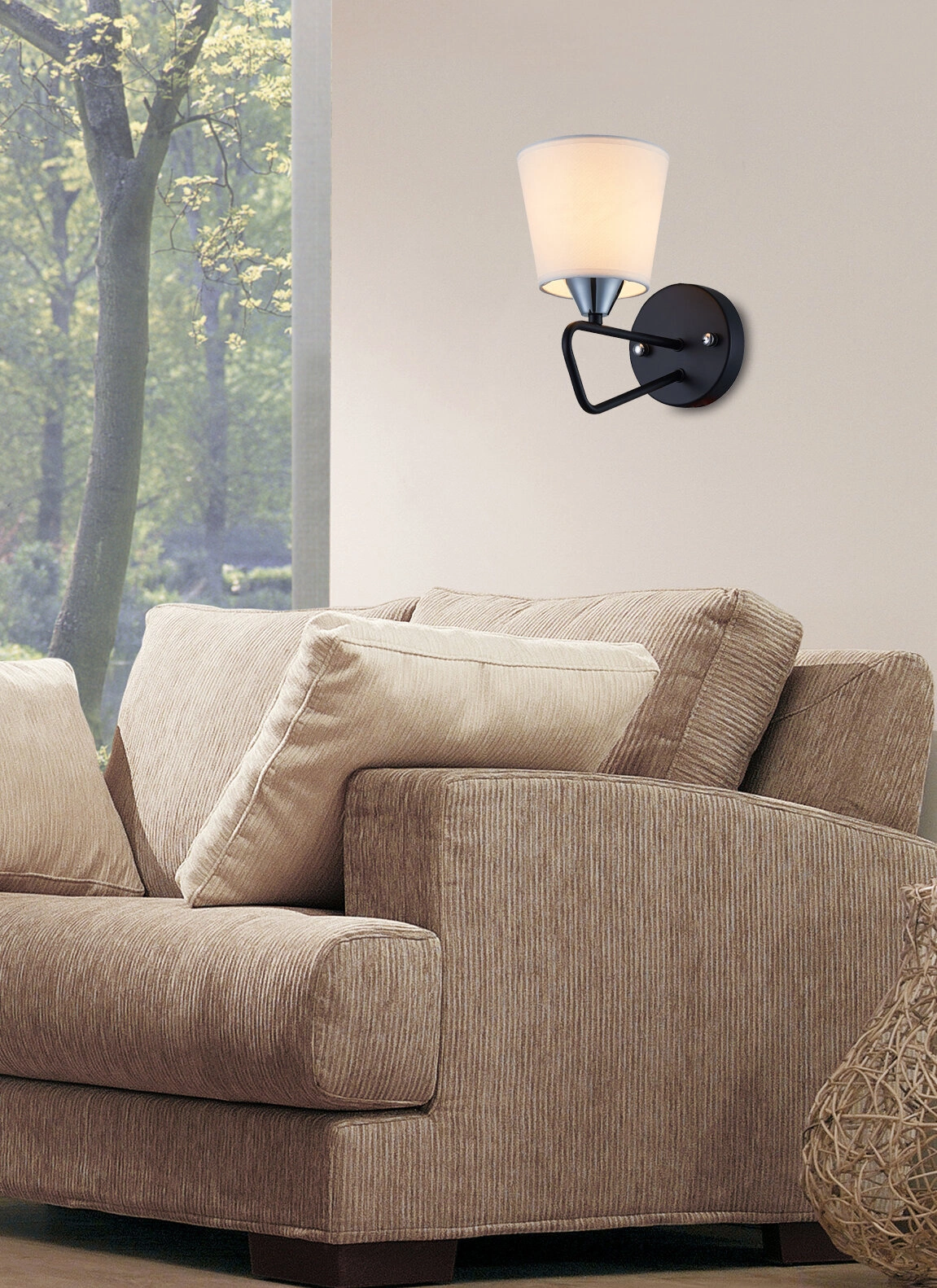 Morley je moderní nástěnné svítidlo, které zvýrazní styl každého interiéru. Jeho černé kovové tělo v harmonii s textilním stínidlem vytváří jednotný celek, který se hodí do tlumených i odvážnějších prostor. Díky klasické patici E14 si snadno zvolíte žárovku podle svých potřeb — od teplého světla pro relaxaci až po jasnější osvětlení vhodné ke čtení nebo práci.