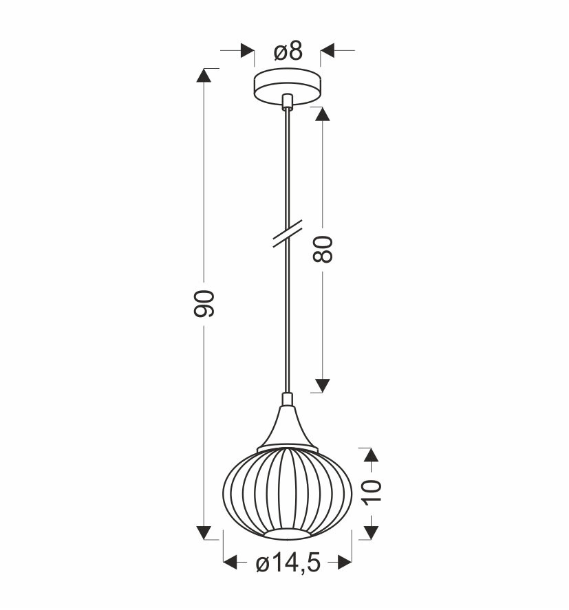 Rodina tří klasických závěsných svítidel z černého kovu s rýhovaným skleněným stínidlem. Svítidla jsou k dispozici ve třech velikostech stínidel. Výrobky této rodiny jsou ideální pro místnosti, jako je obývací pokoj, jídelna, kuchyně, ložnice, pracovna Závěsná lampa se stínidlem o velikosti 145 mm a jedním světelným bodem. U výrobků s externím zdrojem světla není žárovka součástí dodávky. Vyměnitelný světelný zdroj: ano, Maximální příkon (W): 40W, Barva: černá, Světelný zdroj v balení: ne, Materiál: KOV, SKLO, Typ závitu: E14