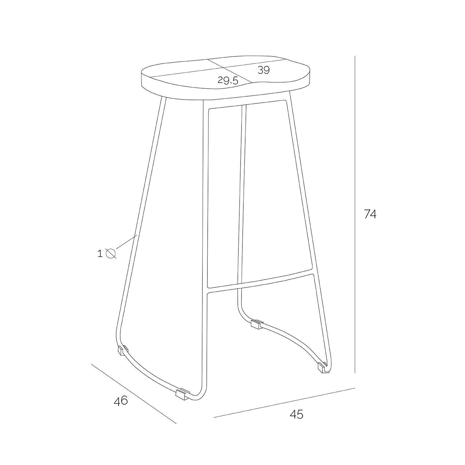Díky promyšlené konstrukci je barová stolička bez opěrky Cazas mimořádně funkční. Široký sedák (39 cm) a hloubka 29,5 cm zaručují pohodlí i při delším sezení, a pevná základna se čtyřmi nohami poskytuje stabilitu až do 120 kg nosnosti. Tento kuchyňský hoker snadno zasunete pod pracovní desku a ušetříte tak místo, což ocení zejména majitelé menších prostor. Kovová základna je vybavena praktickými podložkami, které chrání podlahu před poškrábáním.