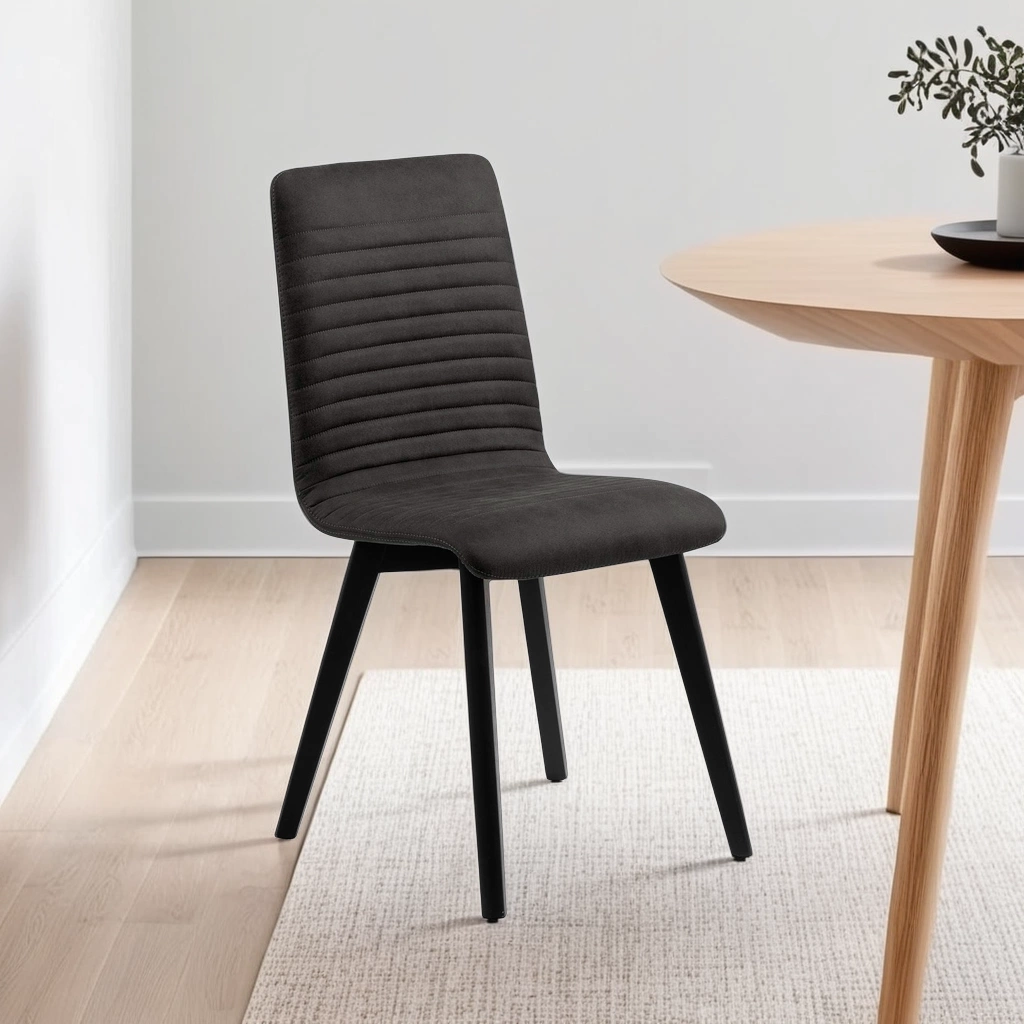 Židle Arosa je ideální volbou pro ty, kteří chtějí podtrhnout moderní a luxusní vzhled svého domova. Tmavě šedé, měkké čalounění se perfektně doplňuje s černou dřevěnou základnou a vytváří sofistikovaný celek inspirovaný glamour stylem. Precizní prošívání dodává židli hloubku a eleganci, díky čemuž se stává nejen praktickým, ale i dekorativním prvkem každé místnosti.