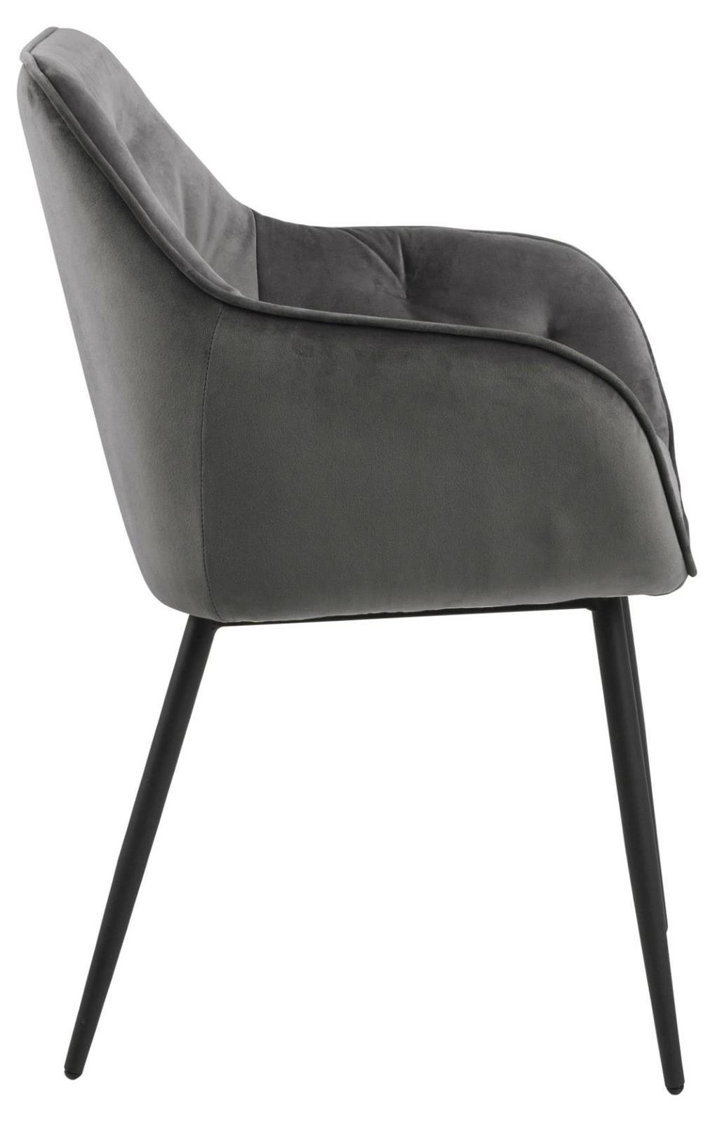 Židle Brooke je ideálním řešením pro ty, kdo si potrpí na komfort během dlouhých posezení u stolu. Díky měkké, na dotek příjemné velurové látce VIC v hlubokém odstínu šedé si užijete pohodlí i při dlouhých rodinných večeřích nebo přátelských rozhovorech. Područky poskytují přirozenou oporu a křeslový tvar příjemně obklopuje tělo, což přispívá ke stabilitě a pocitu bezpečí. Skvělá volba jako jídelní židle, ale také jako židle do obýváku nebo ke kosmetickému stolku ve stylu glamour.