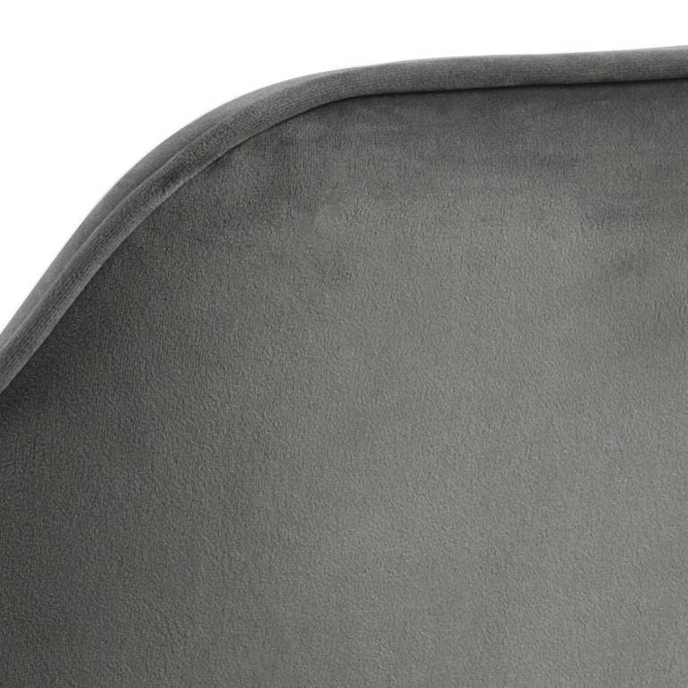 Design židle Brooke zaujme precizními detaily: prošívané opěradlo ve tvaru mušle a matné černé nohy tvoří harmonický celek, který podtrhuje luxusní atmosféru místnosti. Ušlechtilý šedý velur krásně ladí s lesklými doplňky, zároveň je nadčasový a snadno kombinovatelný s dalšími barvami. Nízká výška sedadla (47 cm) zajistí, že Brooke skvěle pasuje k běžným jídelním stolům i moderním toaletkám.