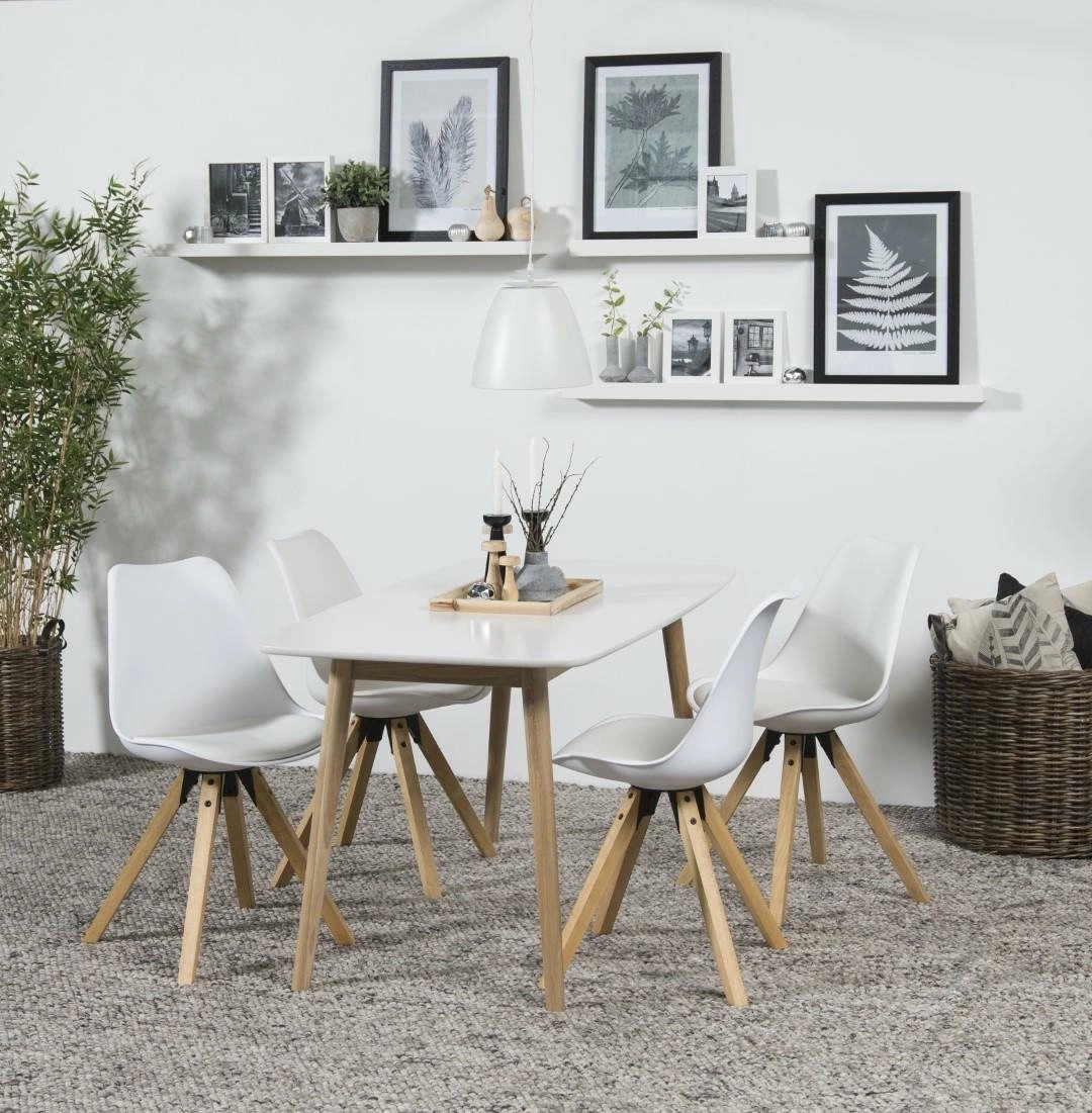 Jídelní židle Dima od značky Actona je spojením moderního skandinávského stylu s praktičností pro každodenní použití. Je vyrobena z odolného bílého plastu a přírodního dubového dřeva, nabízí pohodlné sedadlo s výškou 48 cm a šířkou 48,5 cm. Tento model je ideální do jídelny, kuchyně nebo obývacího pokoje – zaručuje komfort a snadnou údržbu čistoty.