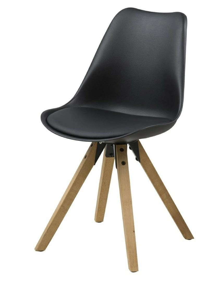 Židle Dima zaujme jednoduchostí a elegancí, skvěle doplní moderní interiéry. Černý sedák s polomatnou povrchovou úpravou působí minimalisticky, a přitom efektně. Dřevěné nohy v přírodním tónu dodávají židli útulný charakter, díky čemuž se hodí jak do světlých, skandinávských jídelen, tak do loftových či moderně zařízených kuchyní.