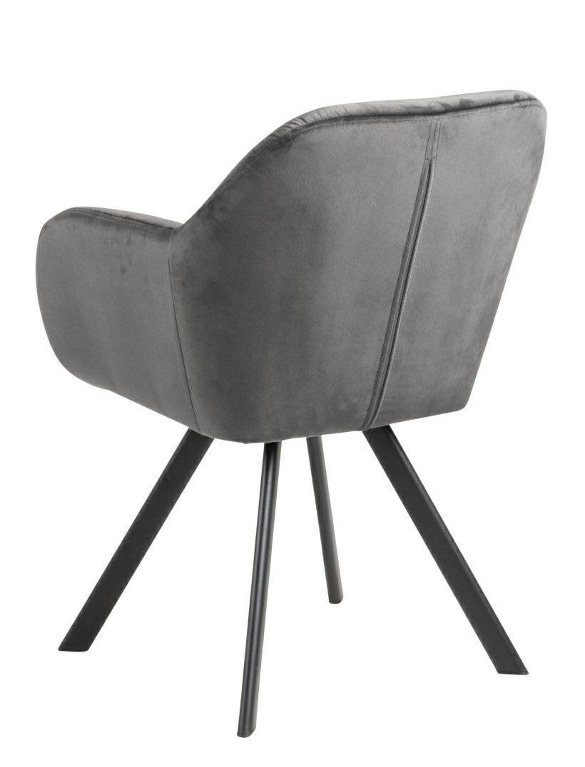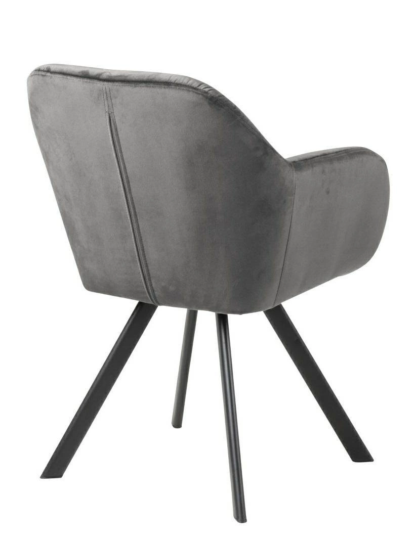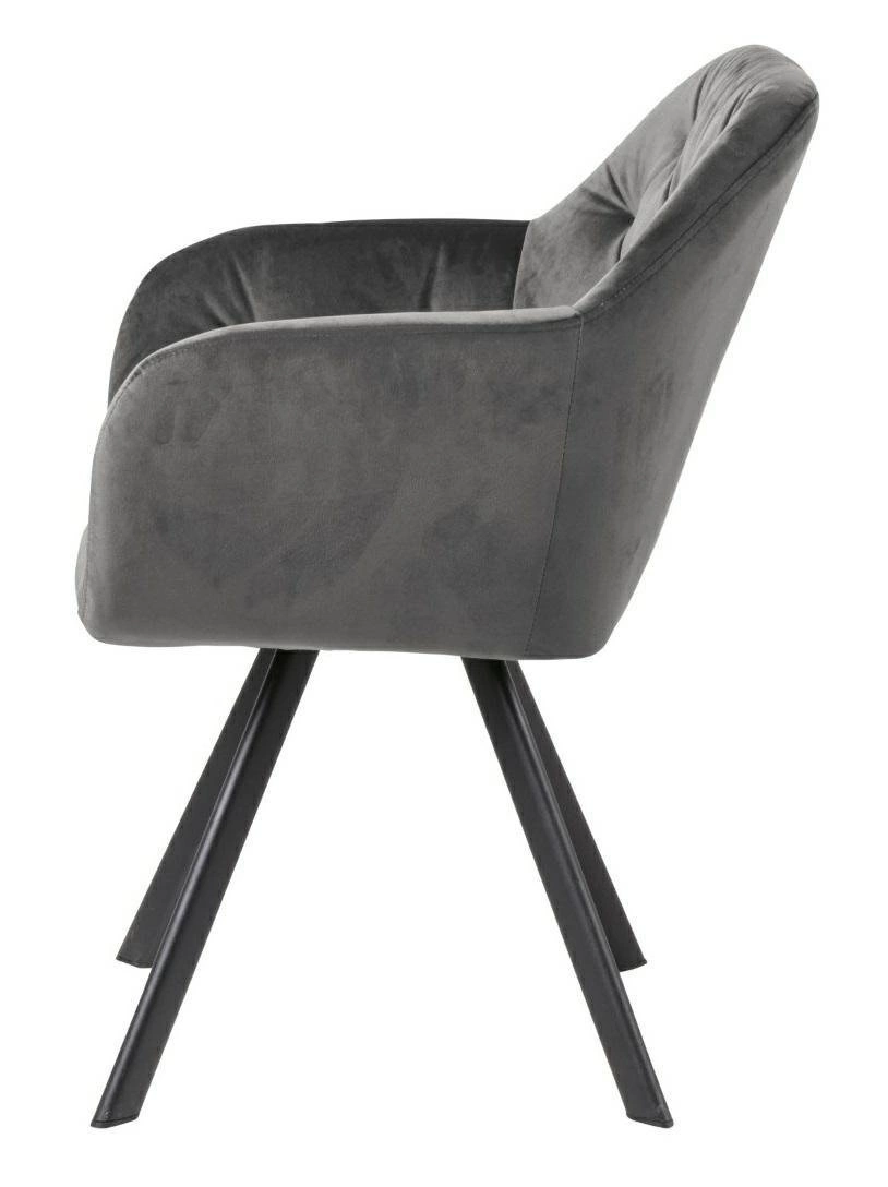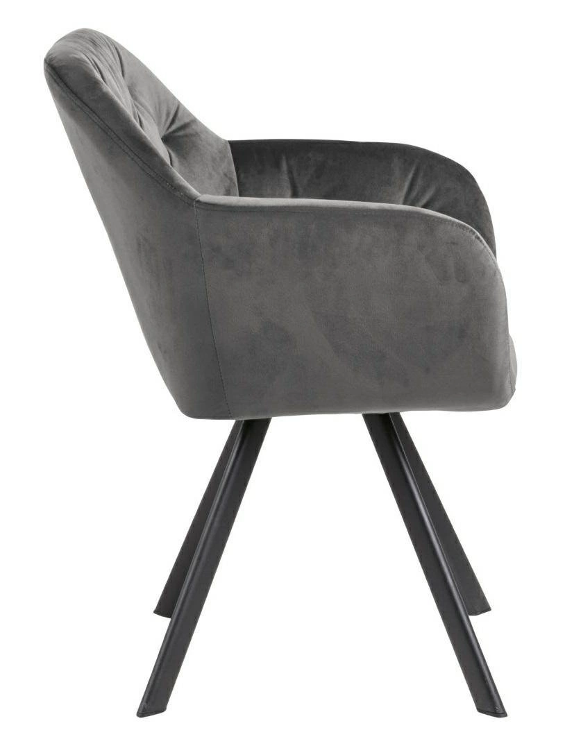 Čalouněná židle Lola VIC od značky Actona je ztělesněním moderního glamour stylu v nadčasovém provedení. Tento model zaujme měkkým, sametovým potahem v tmavě šedém odstínu, komfortní skořepinovou konstrukcí s područkami a stabilní, matnou podnoží z černého kovu. Díky šířce 57,5 cm, hloubce 61,5 cm a otočné funkci se samonávratem poskytuje nadstandardní pohodlí jak v jídelně, tak u toaletního stolku nebo v domácí pracovně.