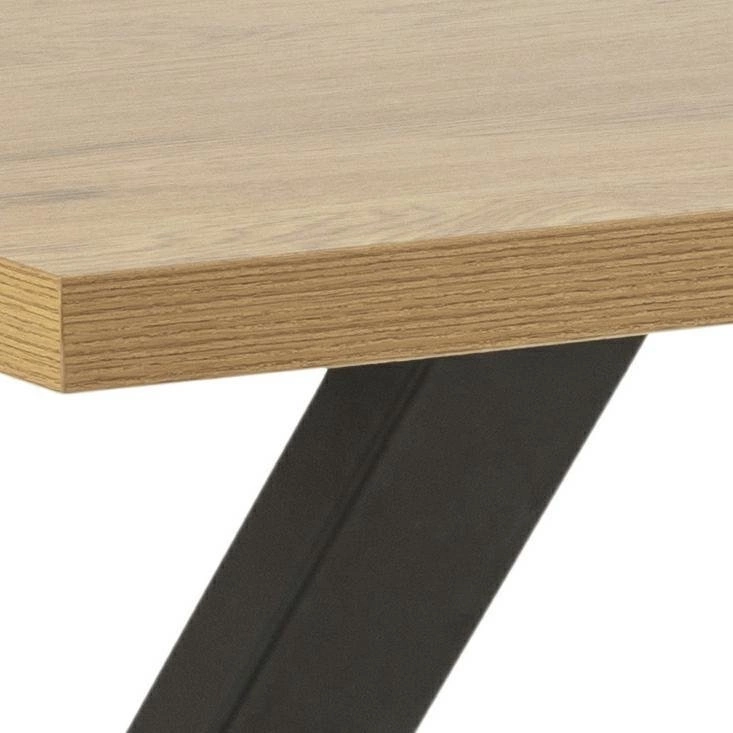 Stůl Wales Cross 160x90 je mimořádně pevný kus funkčního nábytku, který bude sloužit mnoho let. Udržovaný v industriálně moderním stylu. Je vyroben z masivní desky o tloušťce 4 cm a kovových zkřížených nohou, které jsou zárukou odolnosti. Horní část je pokryta dýhou se strukturou divokého dubu, která chrání před jakýmikoli nečistotami. Podstavec je vyroben z mimořádně působivých ocelových profilů s práškovým nástřikem v černé barvě. Matná povrchová úprava nohou stolu dodává stolu eleganci. Hmotnost stolu: 44 kg