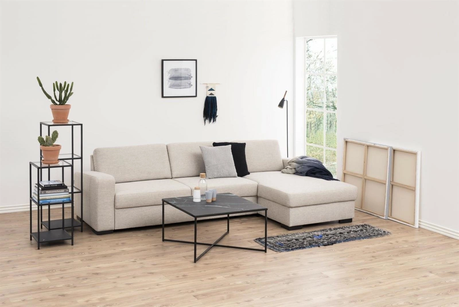 Skříňka Seaford II je vyrobena z kovového rámu s práškovým nástřikem a MDF desky s povrchovou úpravou z lamina v imitaci dubu v černé barvě. Hmotnost: 6,7 kg.