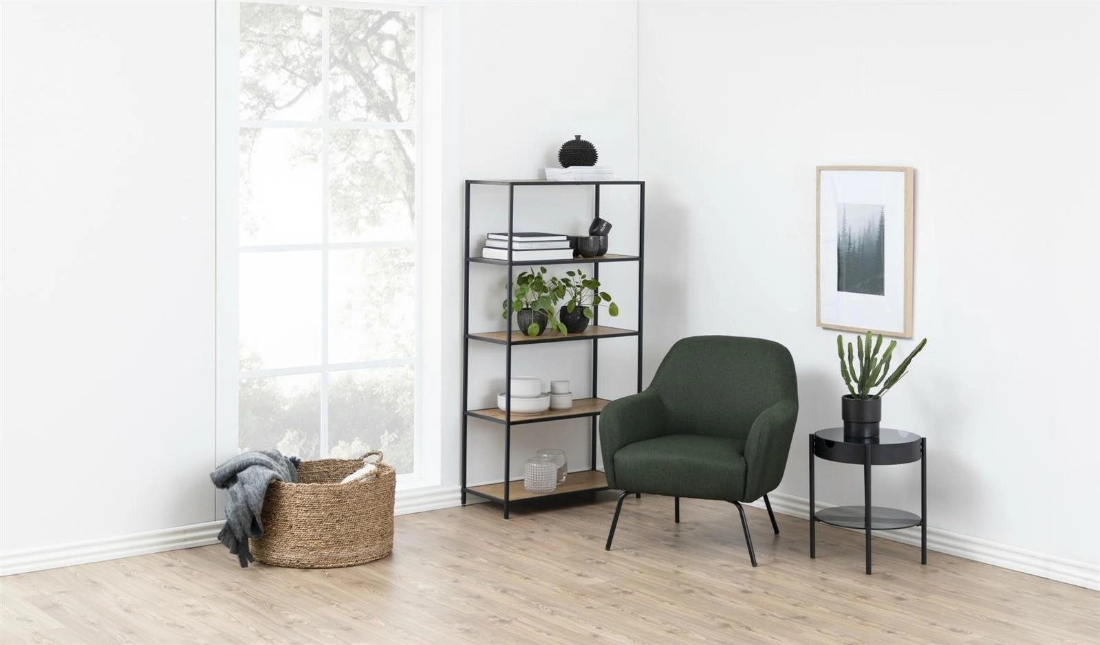 Loftový regál na knihy Seaford IX od značky Actona představuje spojení minimalistické konstrukce s funkčností a moderním designem. Stabilní černý kovový rám a pět širokých polic v přírodním odstínu dřeva zajistí atraktivní vystavení i pohodlné ukládání knih a dekorací. Díky promyšleným rozměrům – výška 150 cm a šířka 77 cm – je regál ideální volbou do obývacího pokoje, domácí pracovny nebo ložnice.
