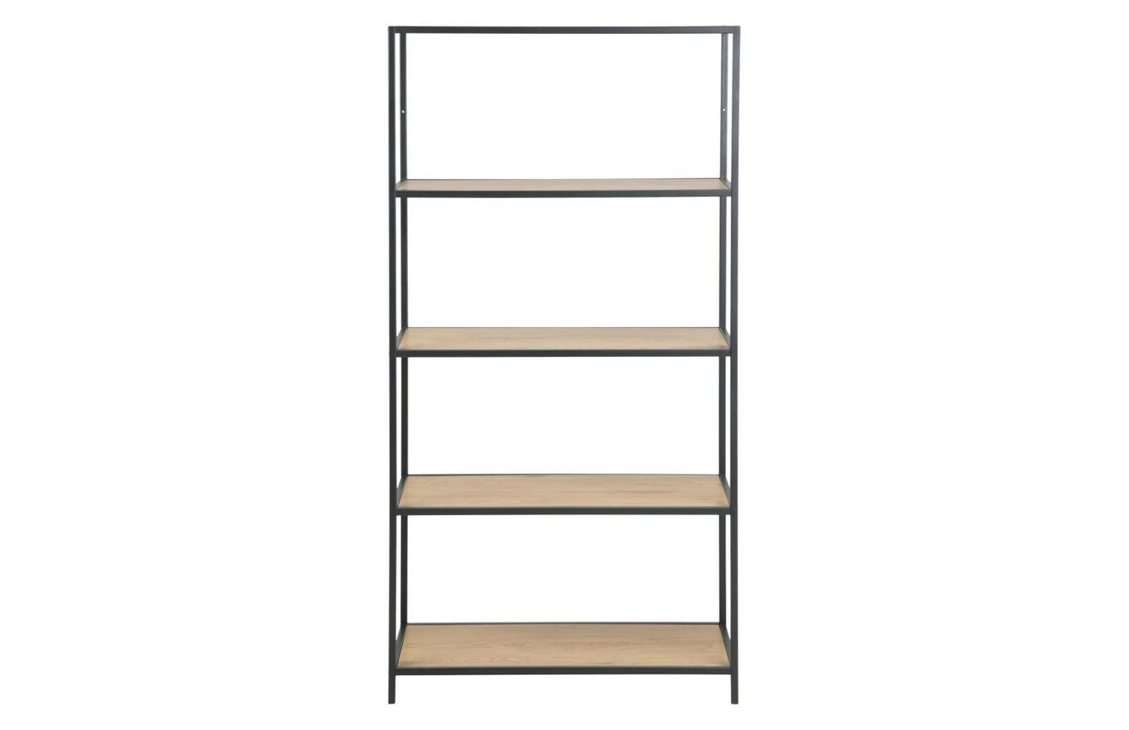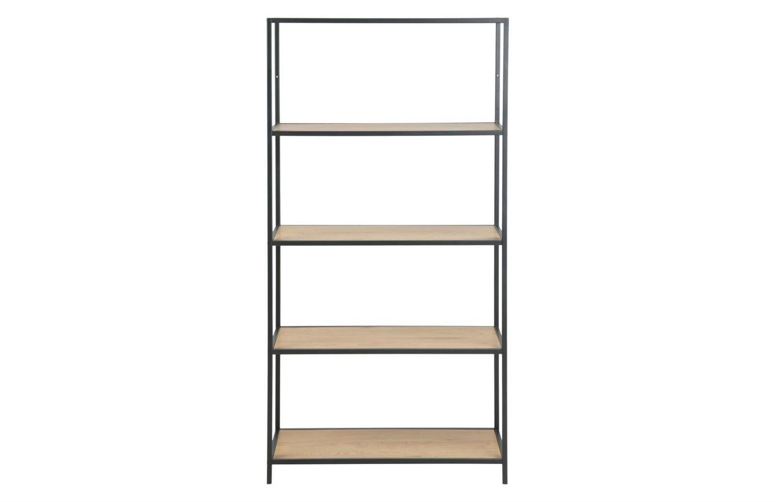 Loftová knihovna Seaford IX Actona černá s dubovými policemi do obýváku 77 cm