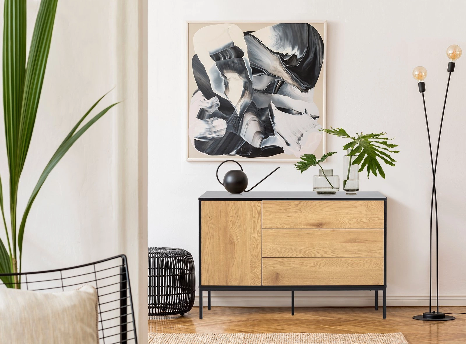 - Kombinace černé a přírodního dubu – snadno sladíte komodu s různými styly interiéru