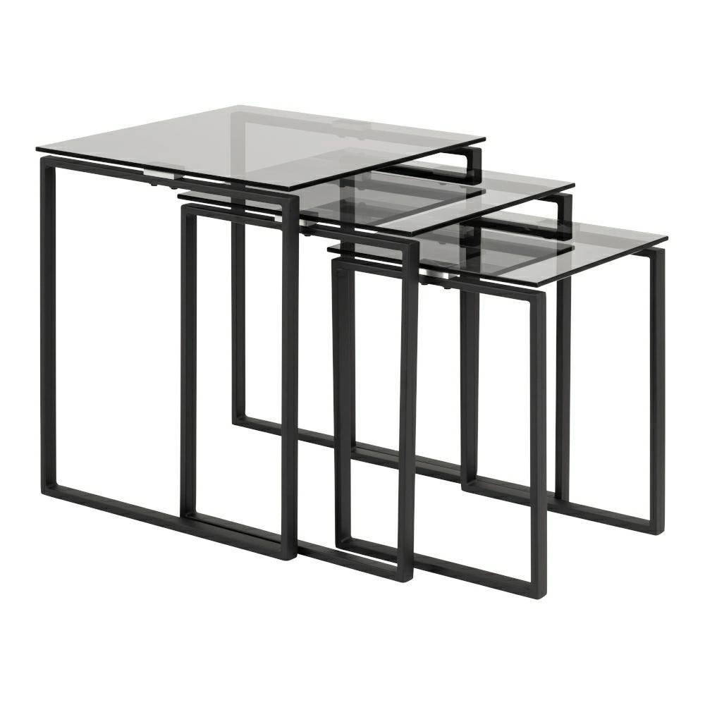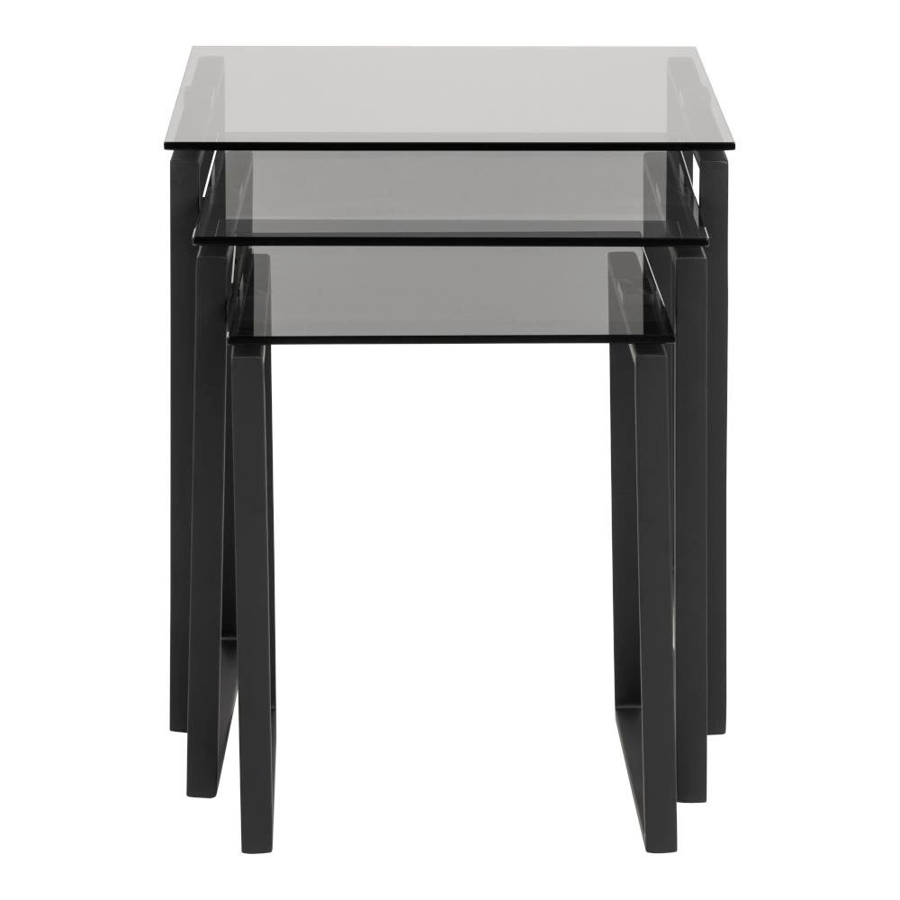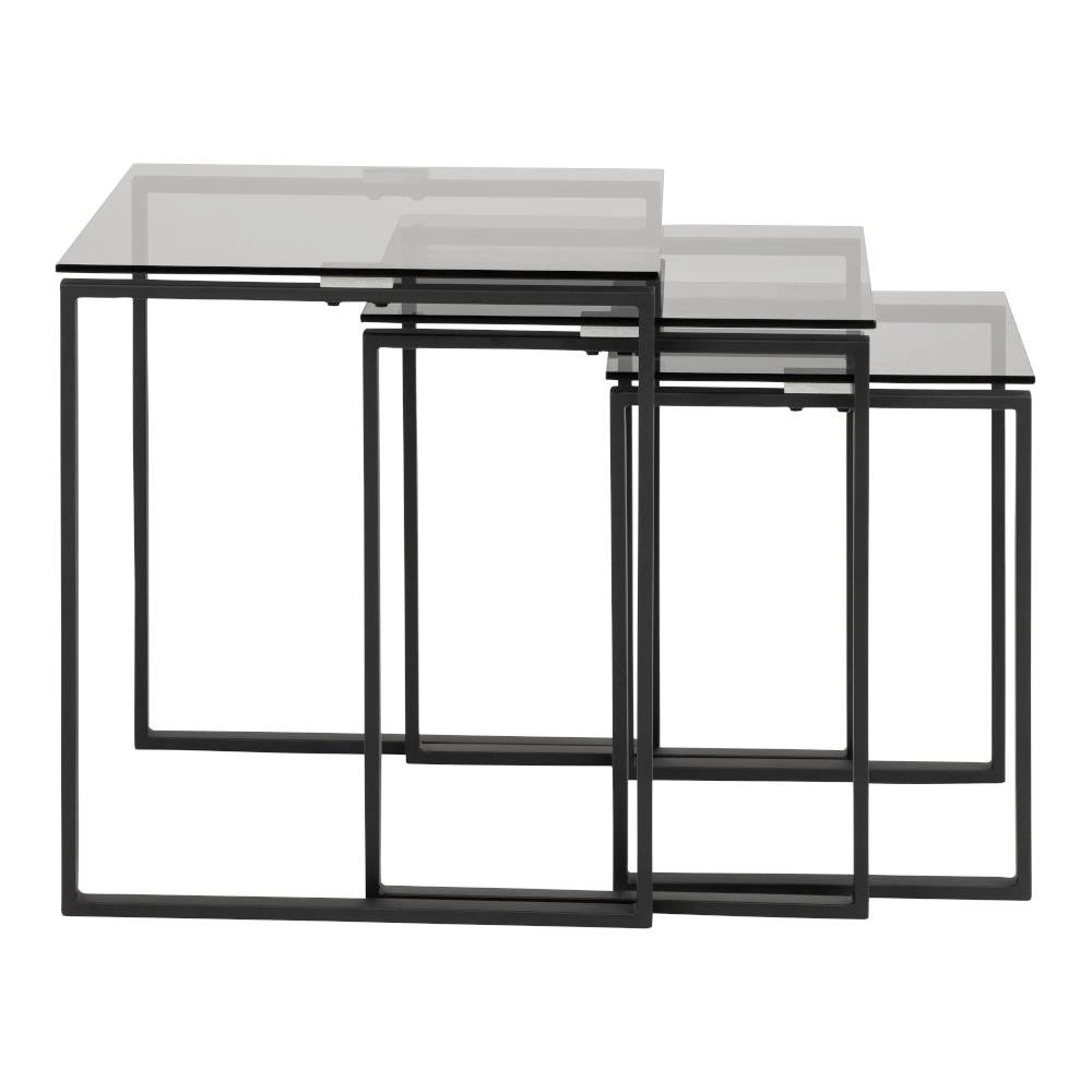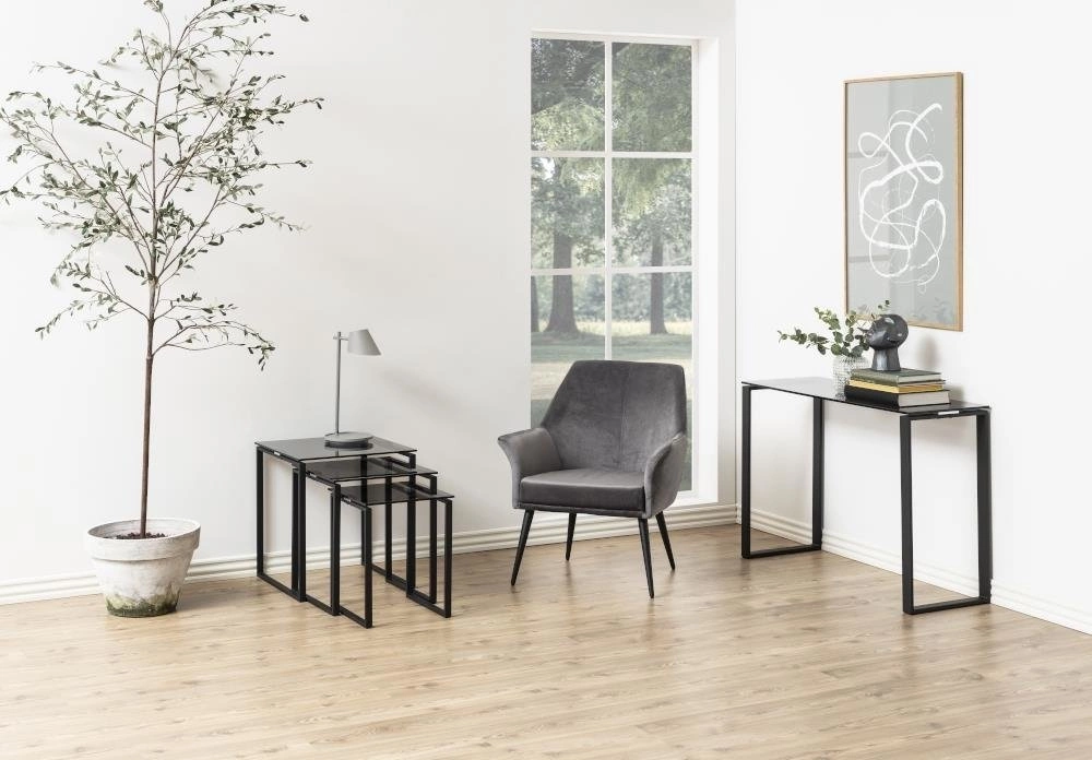 Sada tří moderních konferenčních stolků Katrine ze skla, čtvercových do obývacího pokoje od značky Actona je stylová volba, která spojuje minimalistický design, praktičnost a elegantní zpracování. Sada obsahuje tři stolky různých velikostí, vyrobené z čirého skla a černého kovu. Čtvercové desky o rozměrech 50×50×55 cm, 43×43×50 cm a 36×36×45 cm vytvářejí harmonický celek, který se perfektně hodí do moderních i industriálních interiérů obývacích pokojů. Maximální nosnost každého stolku je až 30 kg, což zajišťuje univerzální využití – jako konferenční stolek, odkládací stolek nebo stolek ke gauči.