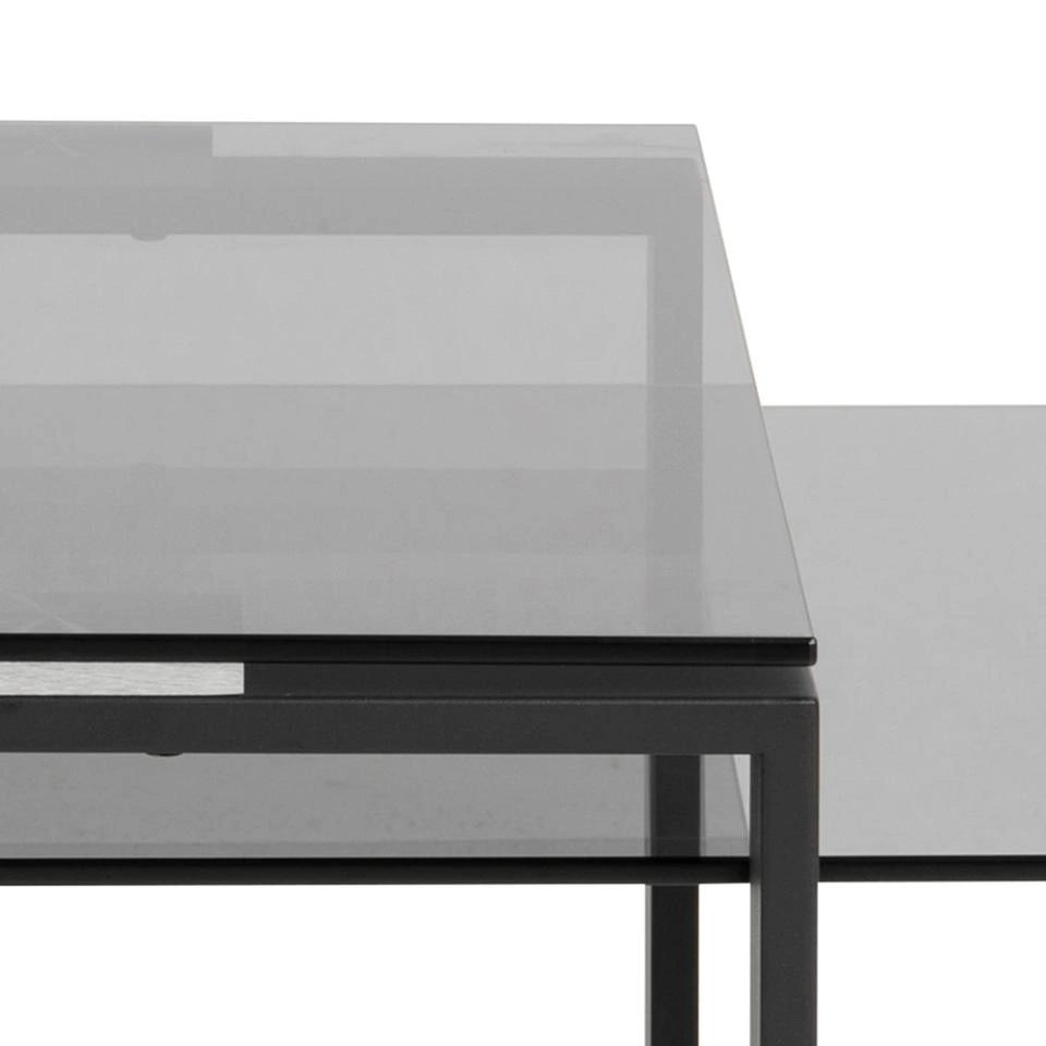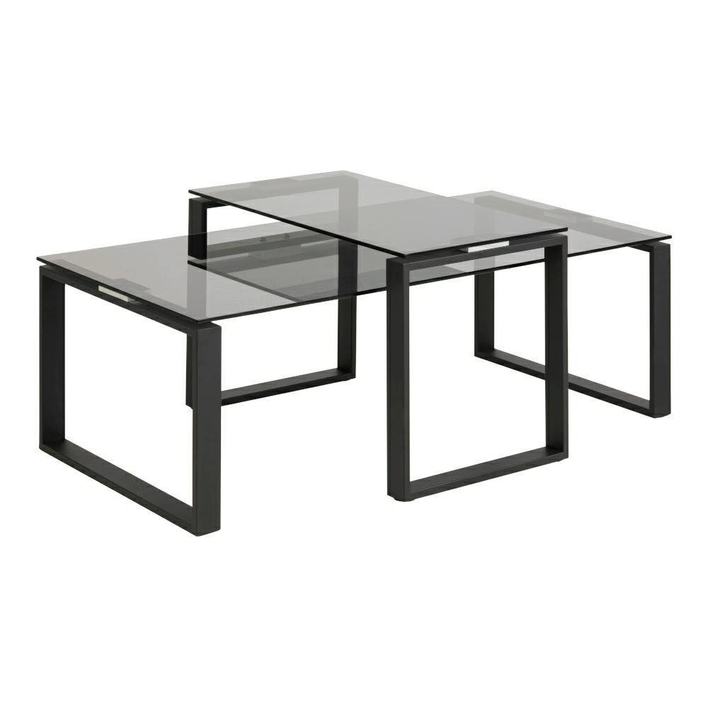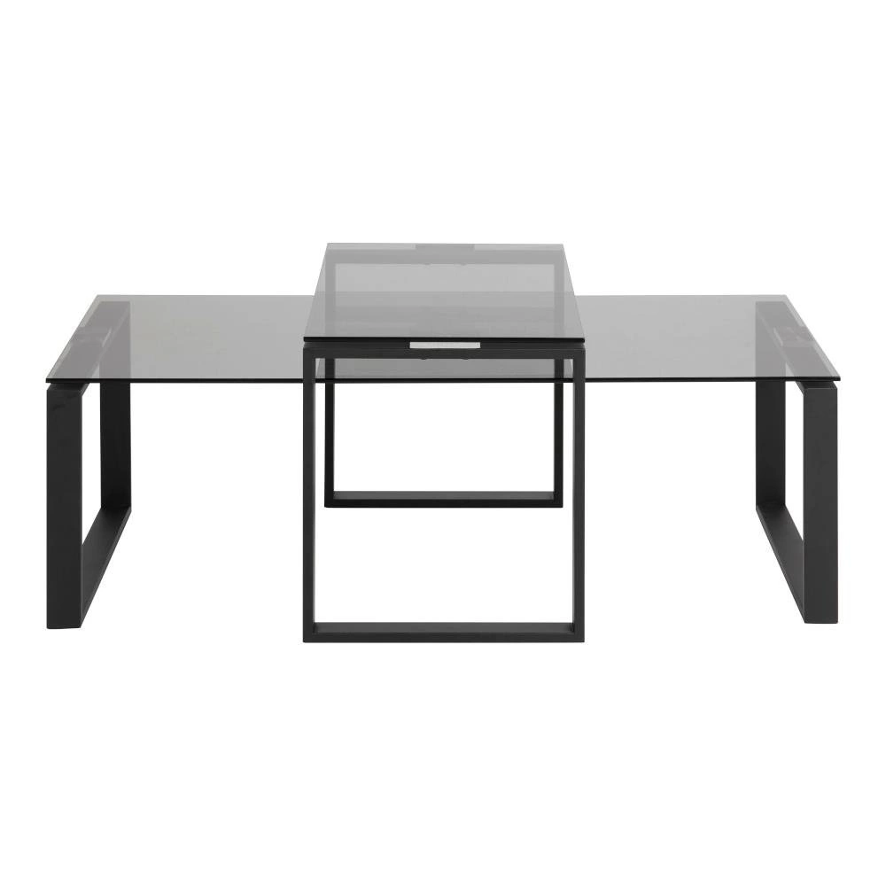 Sada Katrine spojuje minimalistický design s elegantním nádechem, který zvýrazní charakter každého moderního obývacího pokoje. Desky z kouřového skla jsou nejen odolné proti poškrábání, ale také velmi snadno se udržují v čistotě – stačí je otřít měkkým hadříkem, aby vypadaly stále perfektně. Černé kovové nohy ve tvaru lyžin poskytují stolkům stabilitu a dodávají industriální, loftový vzhled, který krásně ladí jak se světlými, tak s tmavými interiéry.