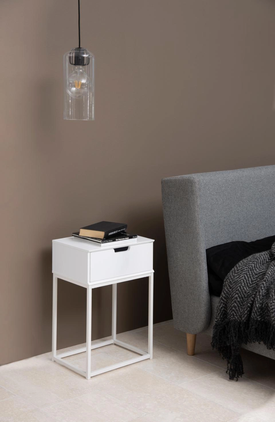 Noční stolek Actona Mitra 40 cm, skandinávský, bílý, se zásuvkou, matný povrch