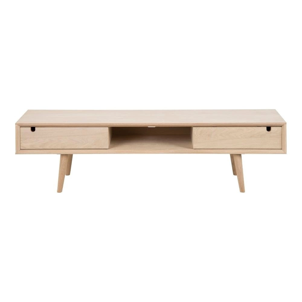 Dřevěná RTV skříňka Century je navržena pro ty, kteří oceňují pořádek a pohodlí v obývacím pokoji. Díky dvěma hlubokým zásuvkám snadno uklidíte ovladače, kabely, hry nebo oblíbené disky, a tím skoncujete s nepořádkem kolem televize. Hladké čelo a precizní zpracování podtrhují minimalistický styl, zatímco přírodní bělený dub přináší do interiéru pocit tepla a harmonie.