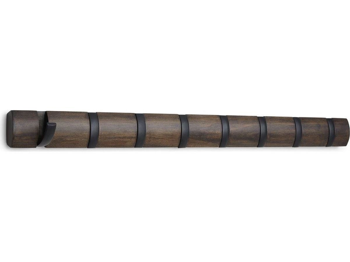 Nástěnný věšák Flip Umbra se skvěle hodí do moderních interiérů, kde je důležitá jednoduchost a estetika. Hnědé dřevo v kombinaci s originálním tvarem lišty vytváří decentní dekoraci stěny a podtrhuje charakter místnosti. Díky zasouvacím háčkům si můžete udržet minimalistický vzhled předsíně – když věšák nepoužíváte, háčky zůstávají skryté a celek působí úhledně a elegantně.