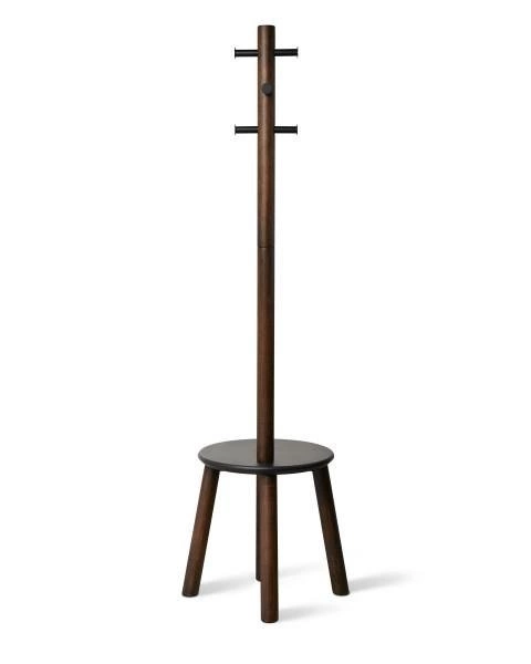 Dřevěná stolička a věšák do předsíně Umbra Pillar moderní tmavý ořech se sedákem