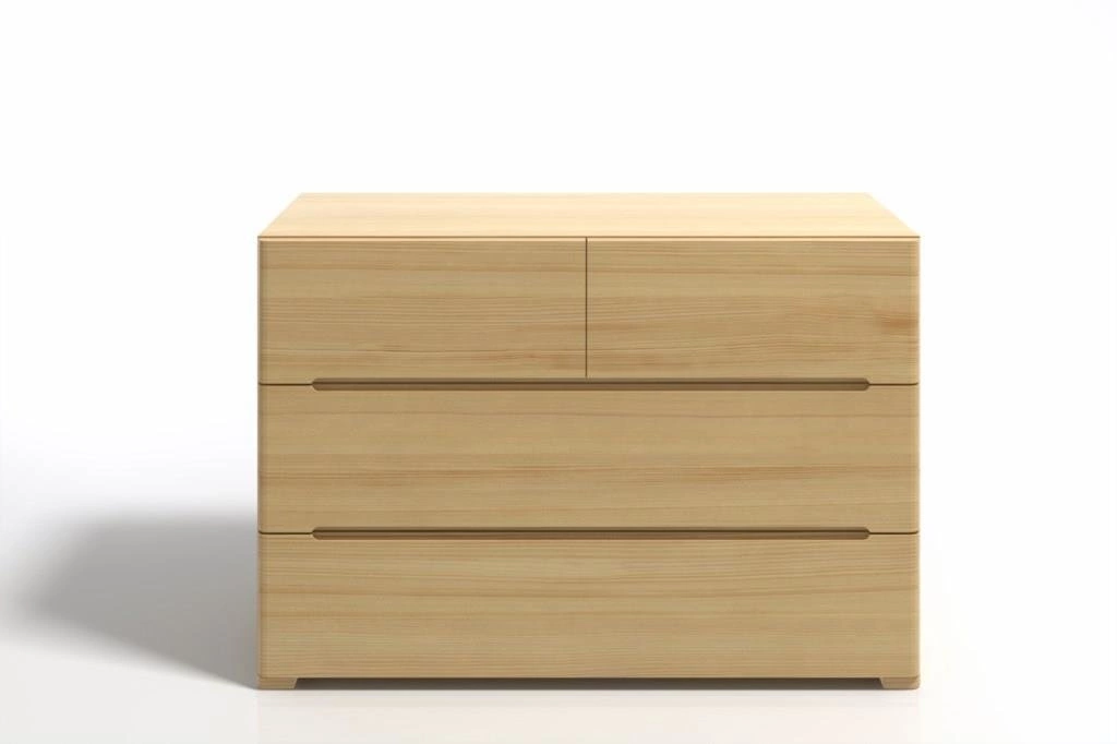 Dřevěná komoda se zásuvkami Sparta 120 cm od značky SKANDICA je dokonalým spojením skandinávské jednoduchosti a maximální funkčnosti. Vyrobena z přírodního borovicového dřeva, vybavená čtyřmi prostornými zásuvkami a pevnou deskou o šířce 120 cm, skvěle se hodí jak do obývacího pokoje, tak do ložnice. Matná povrchová úprava a hladké čelní plochy podtrhují její univerzální a nadčasový charakter.