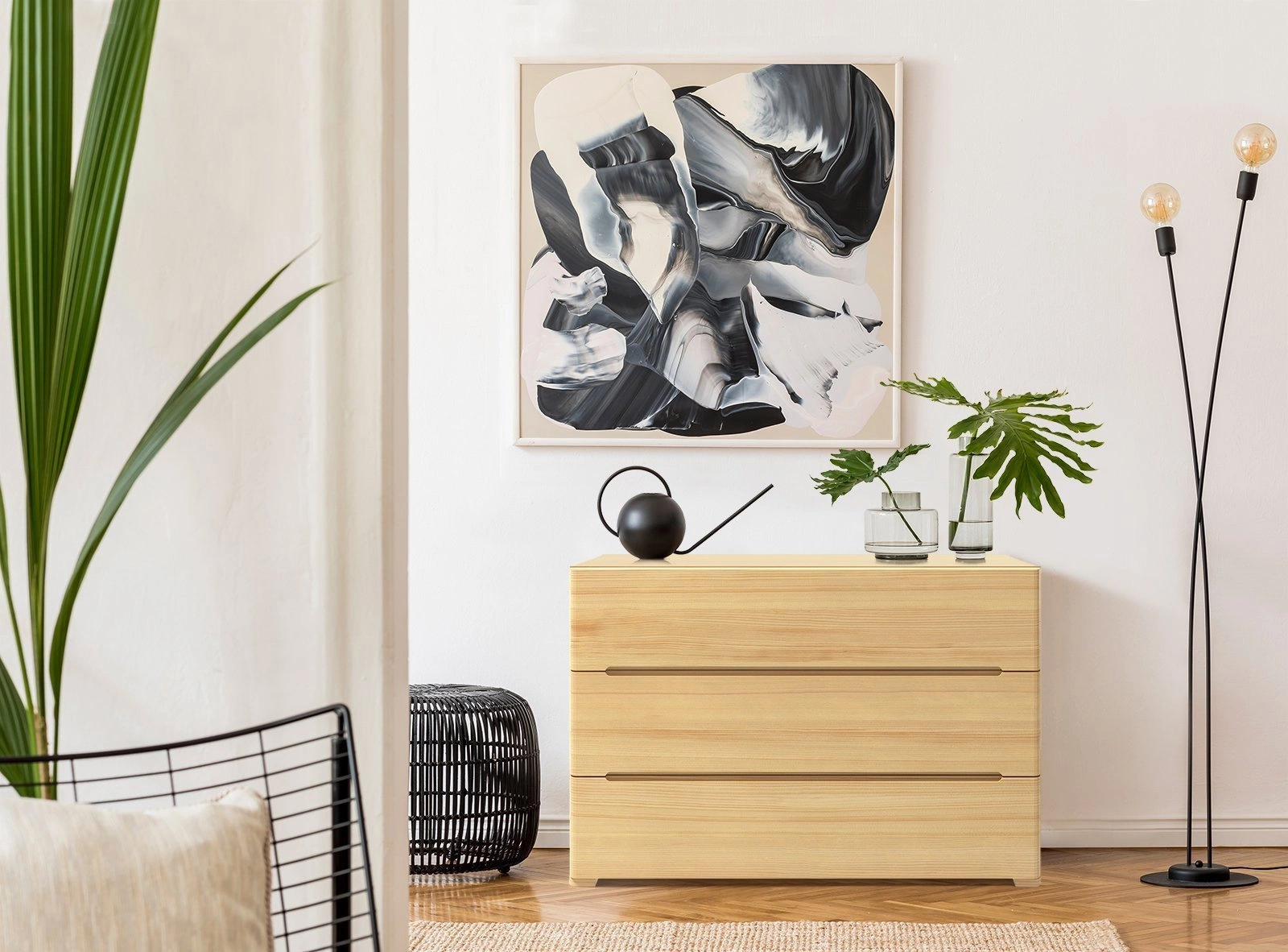 Komoda Sparta okouzlí lehkostí tvarů, harmonickými proporcemi a přírodním odstínem dřeva. Hladké čelní plochy a jemně zaoblené hrany zaručují, že nábytek zapadne do každého interiéru inspirovaného skandinávským designem. Matný povrch zvýrazňuje autentičnost borovicového dřeva a dodává komodě elegantní, decentní charakter. Díky tomu ji snadno sladíte se světlými i tmavšími doplňky.
