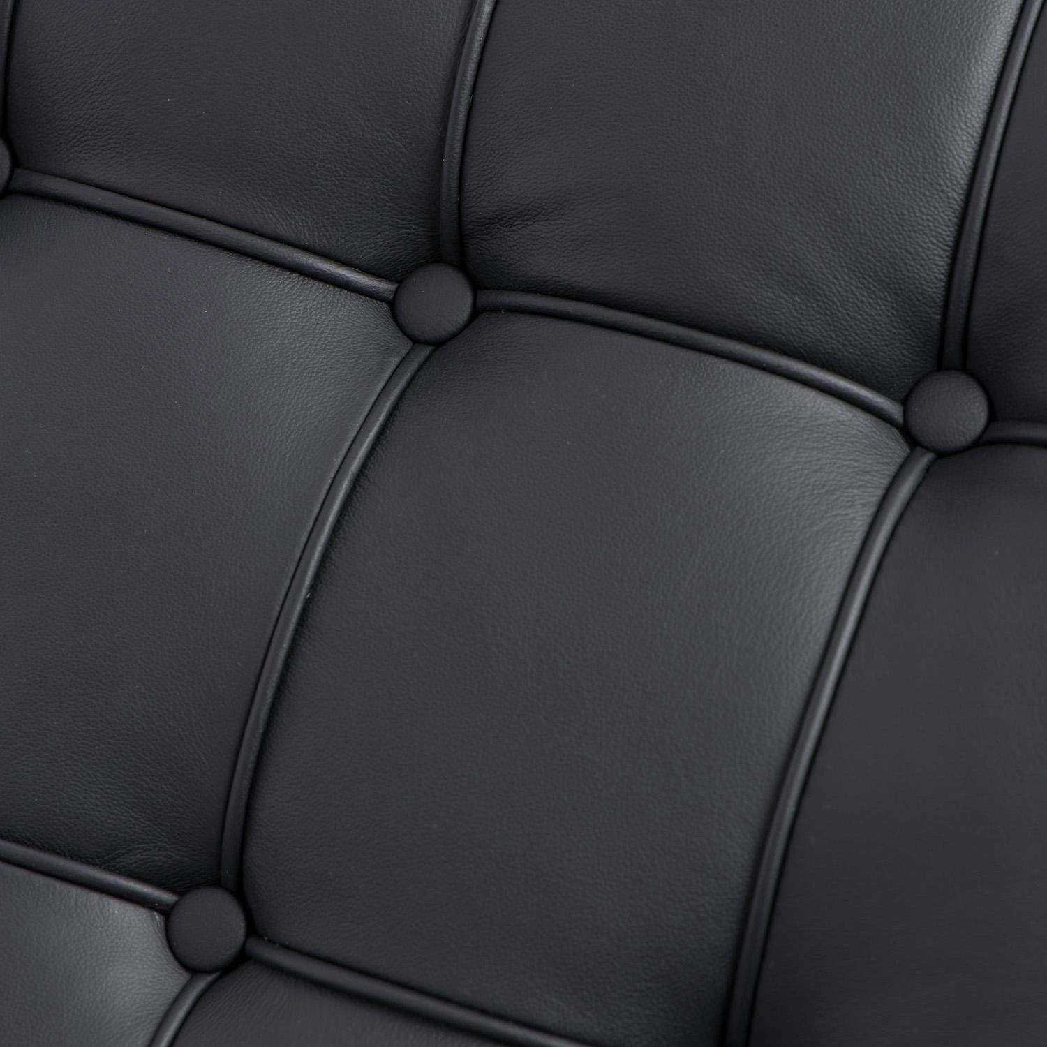 Model BA2 je inspirován legendárním projektem Barcelona, který je známý svou harmonickou kombinací tvaru a funkčnosti. Prošívaný vzor čtverců na měkkém koženém čalounění nejen upoutá pohled, ale také zvýrazňuje jedinečný charakter pohovky. Chromovaná podnož ve tvaru písmene „X“ dodává nábytku lehkost a modernost a zároveň zaručuje dlouholetou stabilitu.
