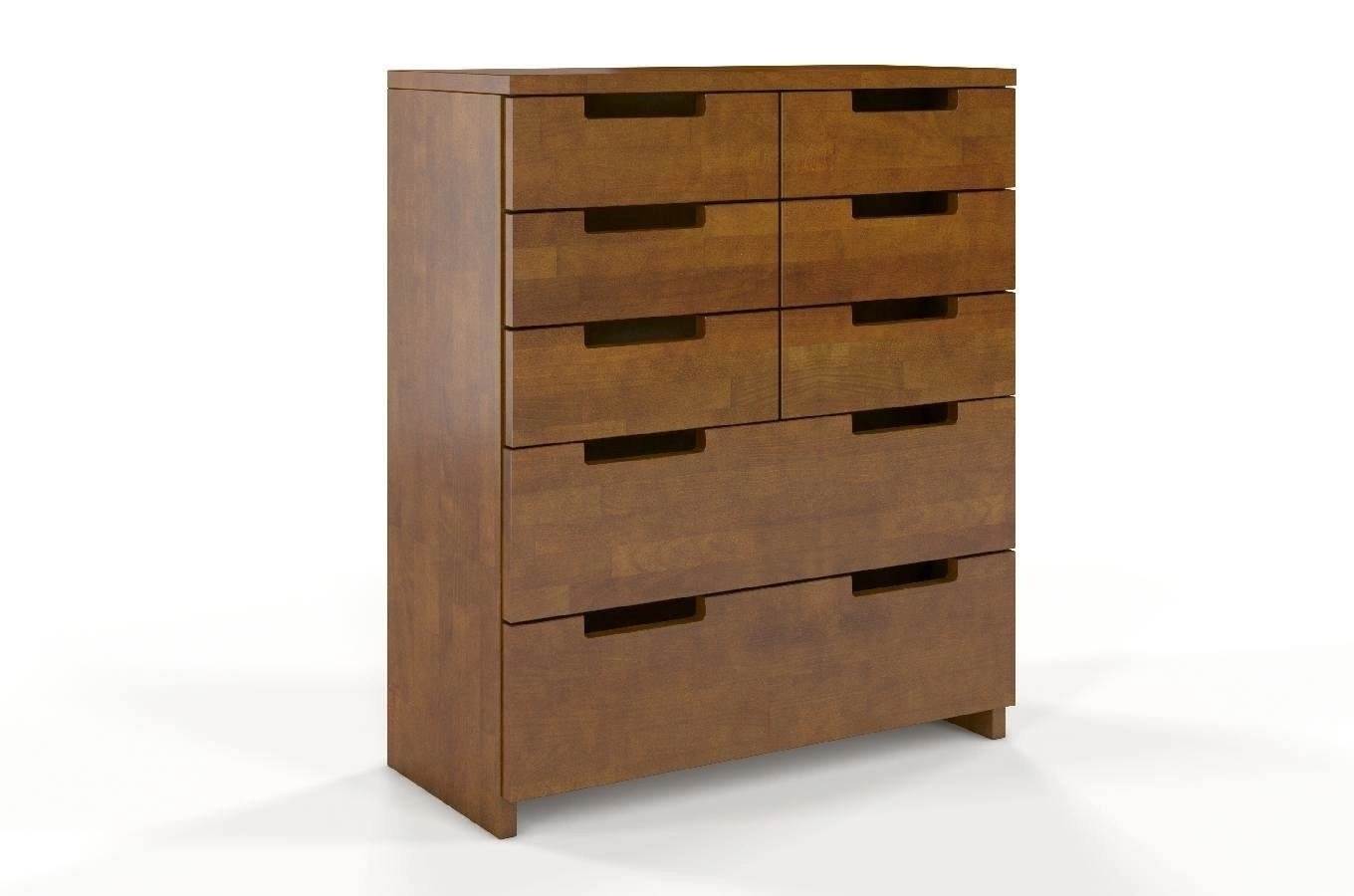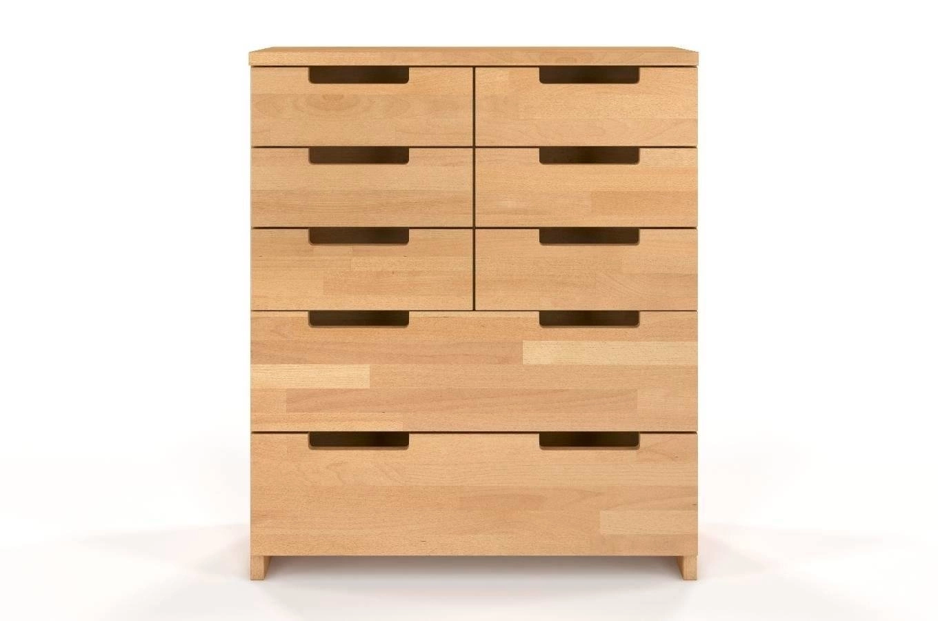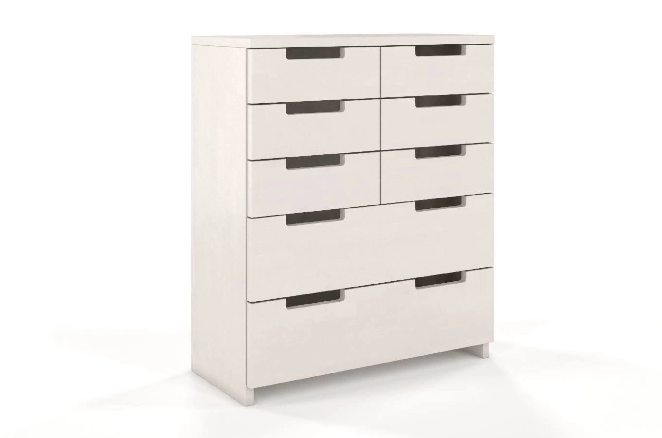 Celodřevěná komoda se zásuvkami Spectrum 8 je vyrobena z bukového dřeva, které zaujme svou pevností a elegantním vzhledem. Buk je ceněn pro svou trvanlivost i jemnou strukturu, která vnáší do interiéru útulnost a hřejivou atmosféru. Možnost výběru barevného provedení vám dovolí sladit komodu s vaší představou i stylem místnosti – od klasické bílé po přírodní odstín dřeva.